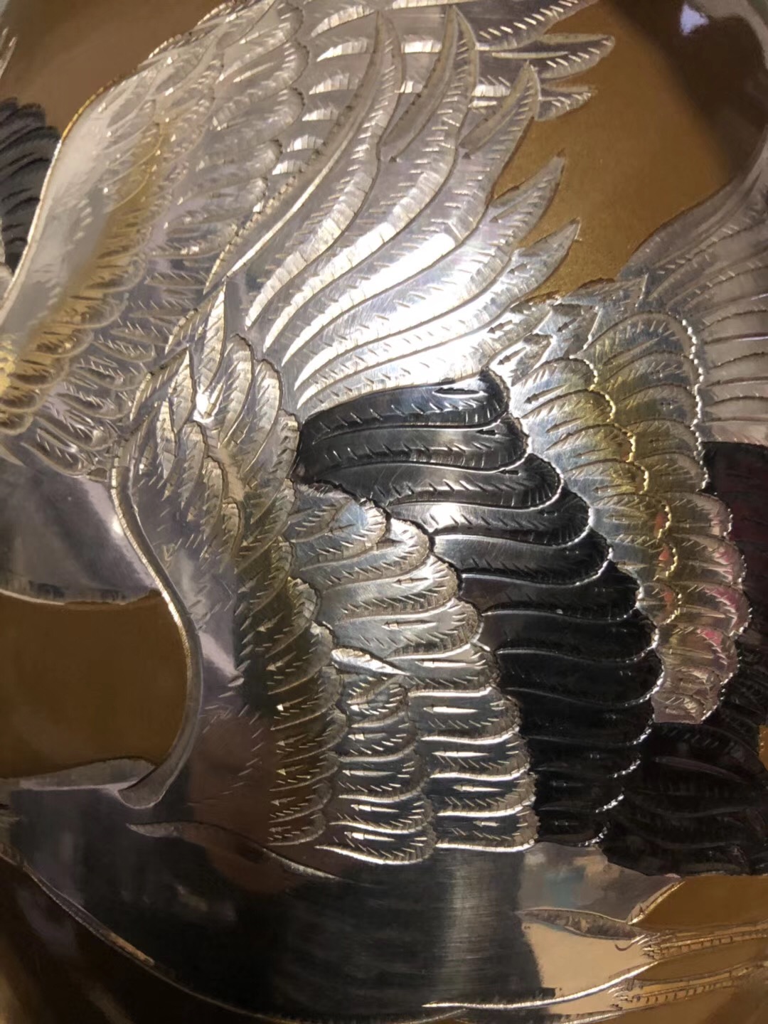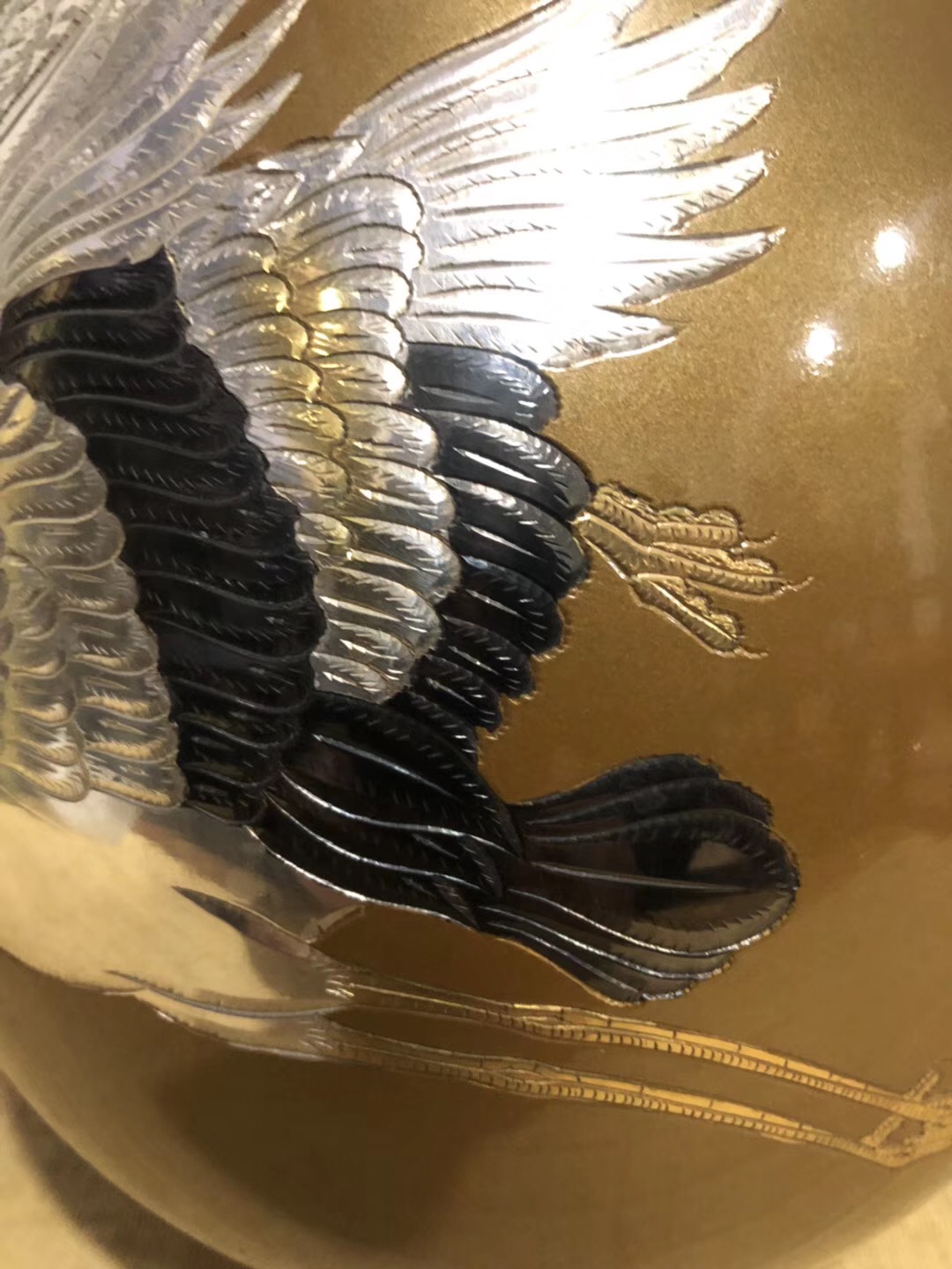 真峰(1898-1944)活跃于20世纪二、三十年代,是日本著名的金工名家。此件拍品铜为胎,以娴熟的刀法刻画出成对仙鹤造型,再以镏金银等手法加以装饰。整件花瓶造型古拙,皮壳靓丽,纹饰清晰极富艺术感染力,不论细部处理,还是整体把握,均增益有度,恰到好处,华贵中不失清雅之气,是一件难得的铜制大花器。