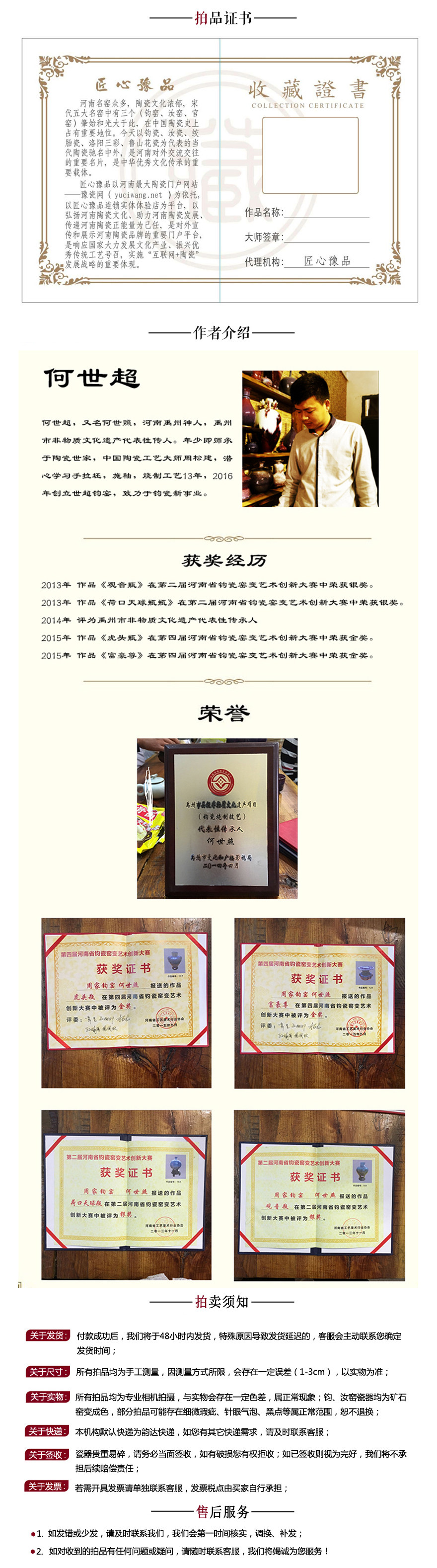 4.2 参与竞拍活动的商品由商家提供,并由商家进行配送及相应的售后服务。用户参与竞拍活动前应仔细查看竞拍活动页面对竞拍商品的信息、商品描述介绍。且知悉认可因摄影、显示等造成描述作品的色调等与原物有误差的,以原物为准。