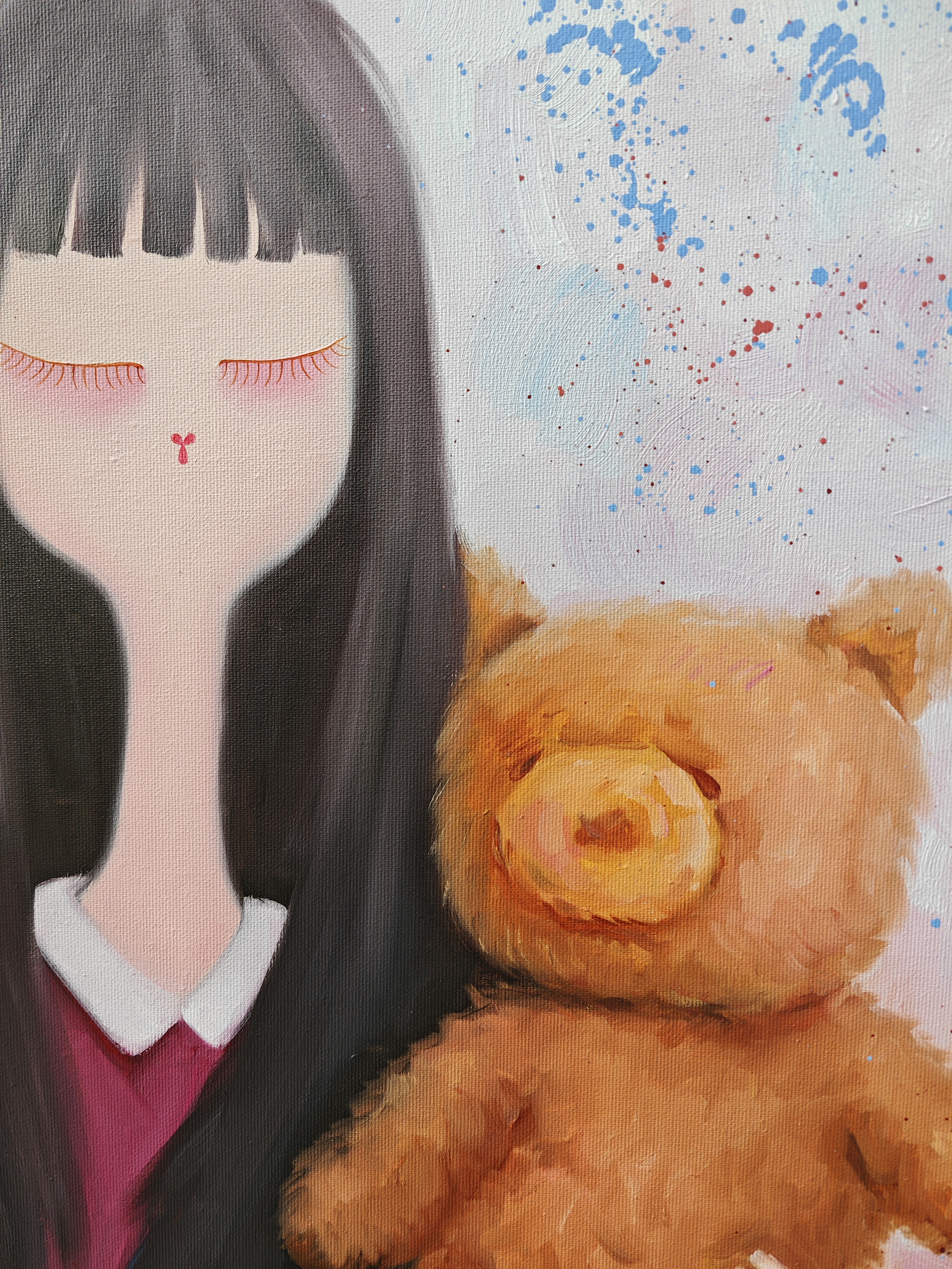 画面当中的桃心小姐手抱玩具熊,画面可爱温暖而又治愈。