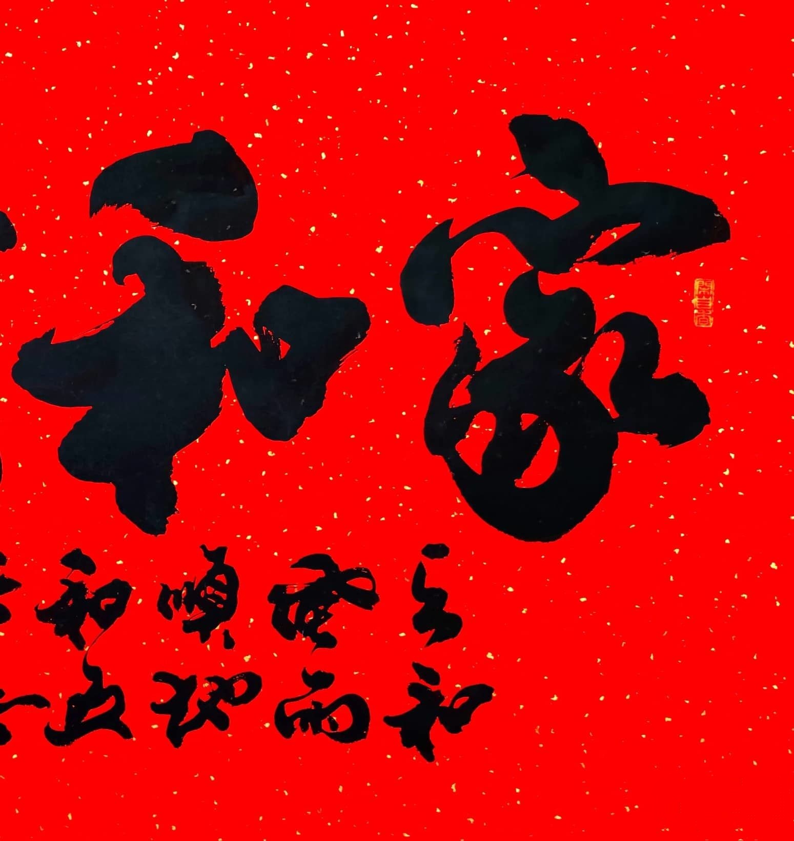 2022年作品,书法《家和万事兴》138x68cm,书法大字万年红洒金宣纸书写