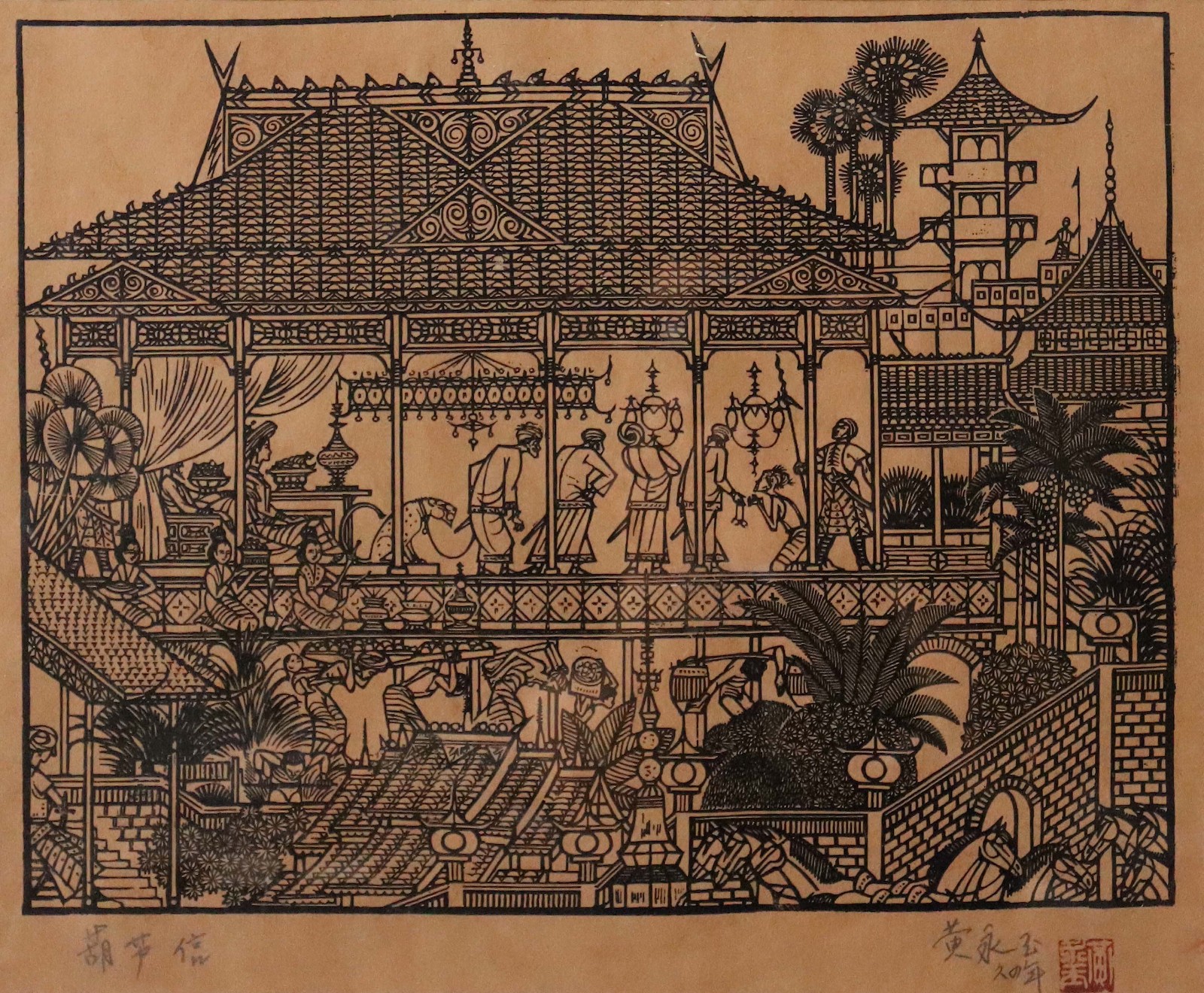 黄永玉(b.1924),笔名黄杏槟、黄牛、牛夫子,土家族,湖南凤凰人。擅长版画、彩墨画。曾在香港从事木刻创作活动,任长城电影公司剧本特邀撰写人,香港《新晚报》画页编辑,1953年后任中央美术学院教授。中国美术家协会常务理事、副主席、顾问。作品有《春潮》、《百花》、《阿诗玛》。巨幅画有《雀墩》、《墨荷》等。
