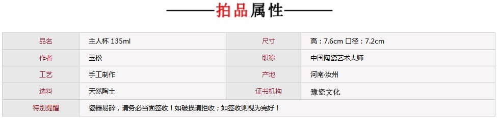尺寸高7.6厘米 口径7.2厘米 135毫升 |