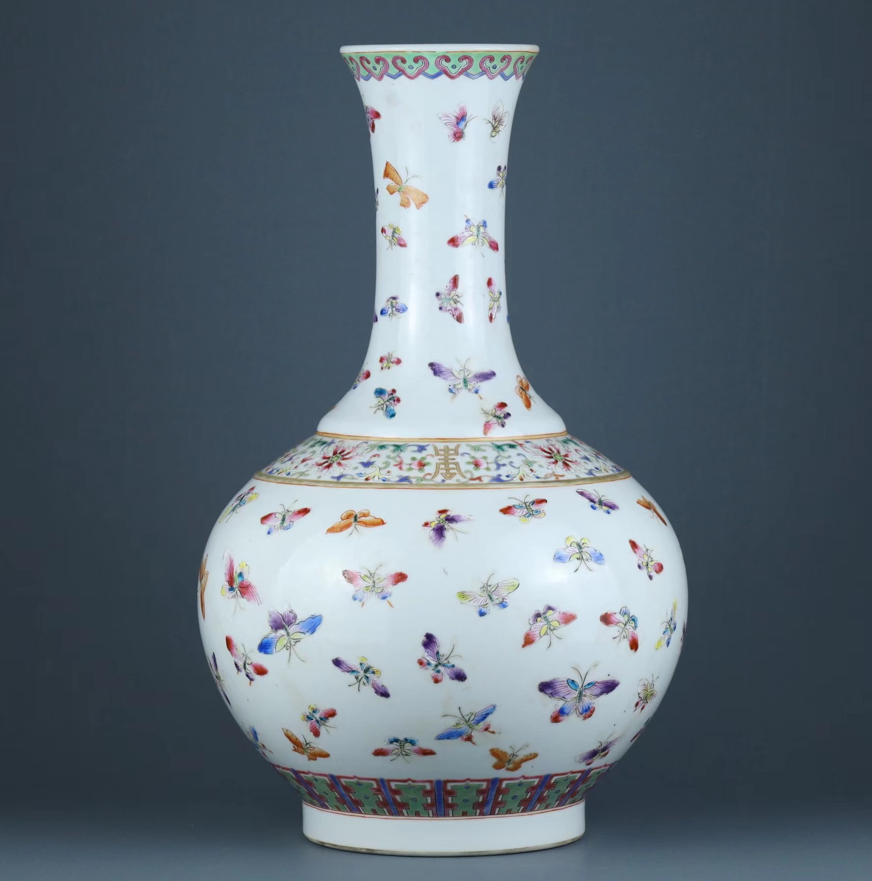 旧藏粉彩蝴蝶纹赏瓶