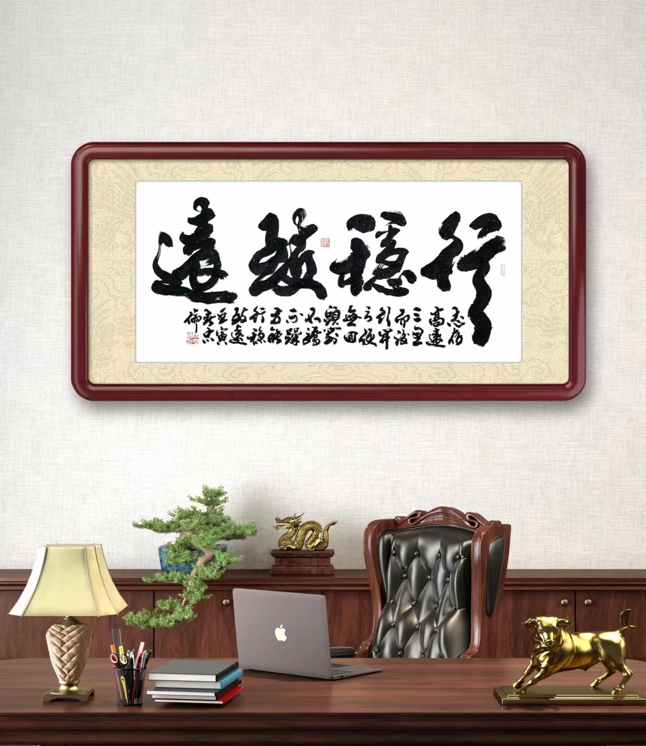 2023年作品,国画-春夏秋冬138x34cmx4+书法138x68cm行稳致远