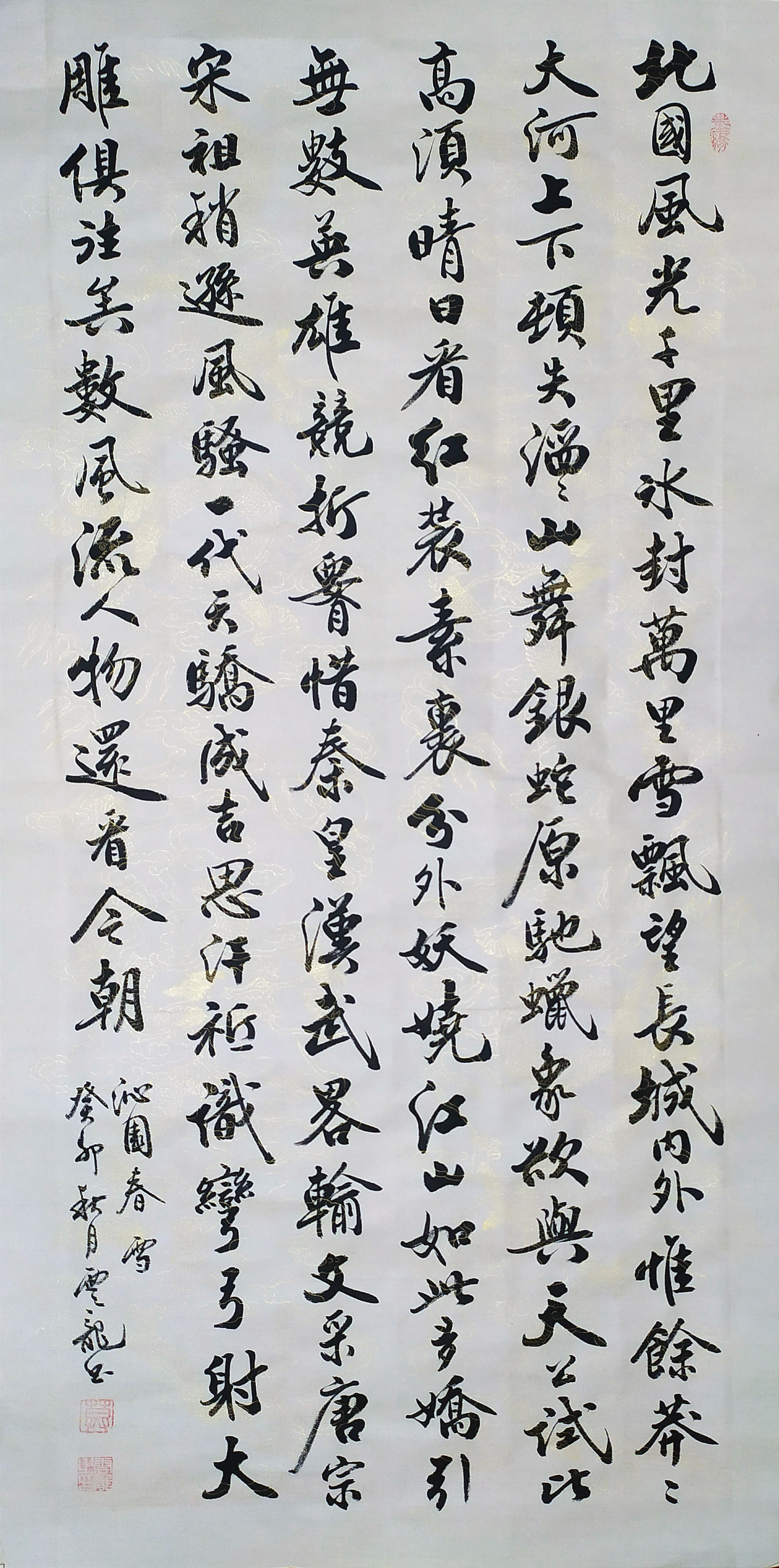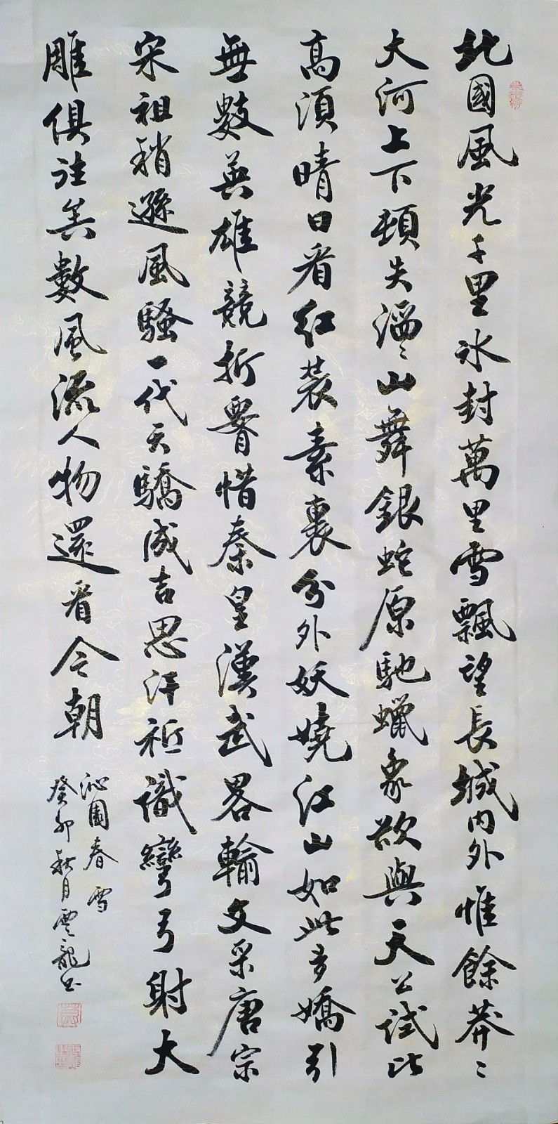 2023年作品,书法《北国风光》138x68cm仿古龙纹宣纸创作