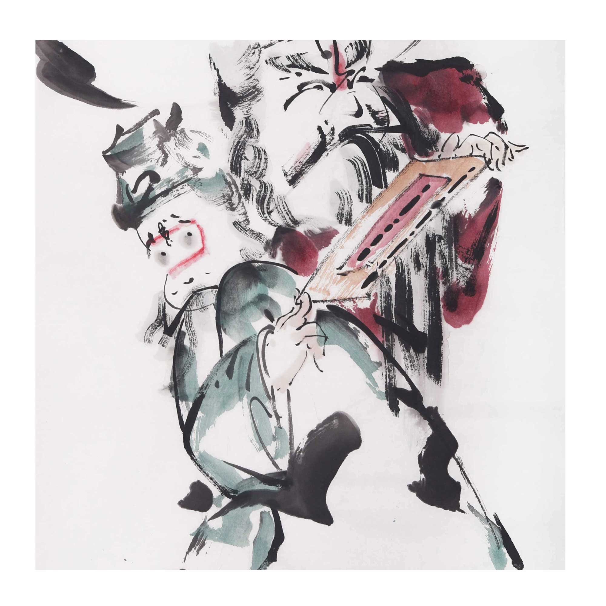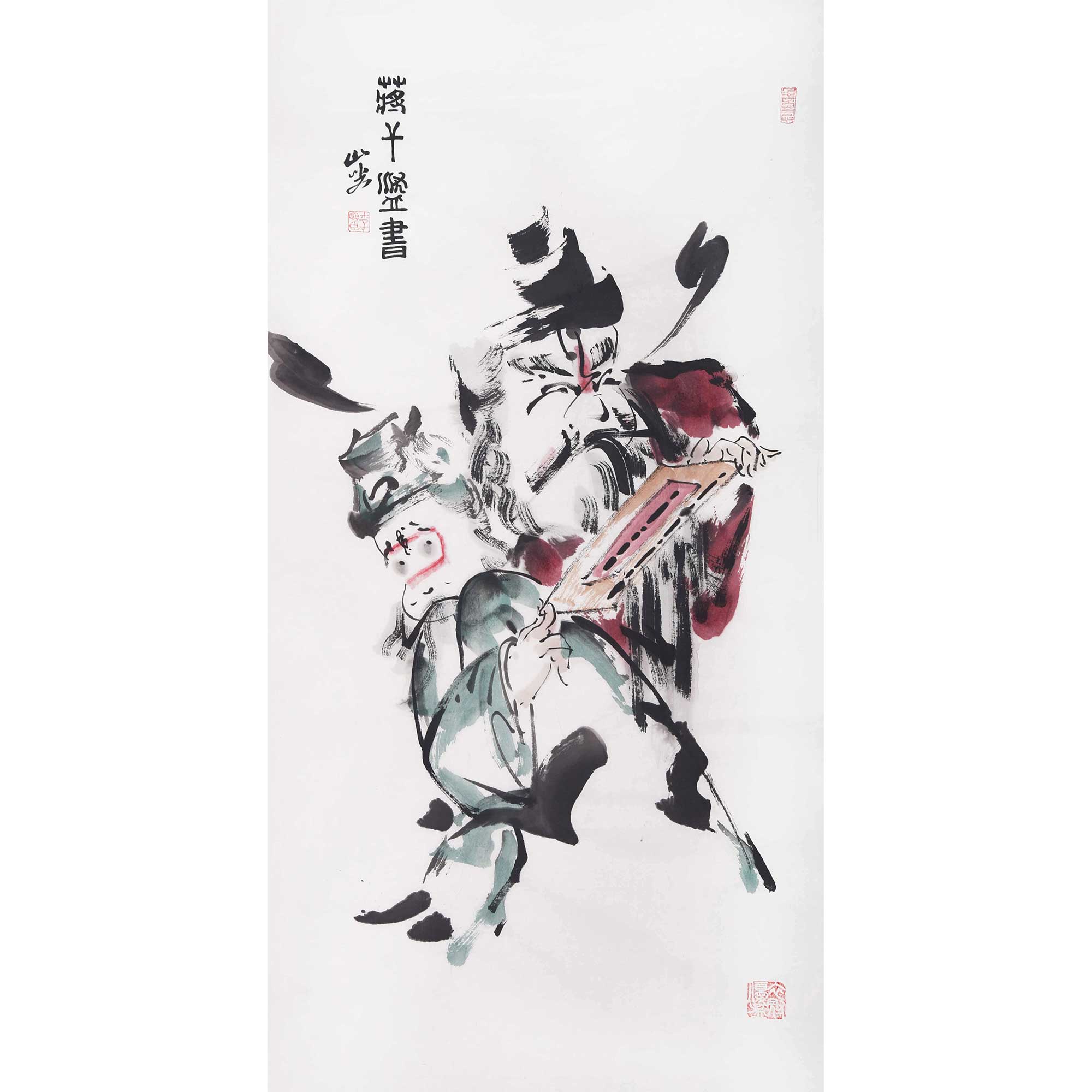 中国著名表演艺术家 李明臣 《蒋干盗书》戏曲人物 99 50;李明臣,全国工商联民间文物艺术品商会、当代艺术家研究会戏画艺术委员会会长,影视剧演员、仁美大学堂教授。1947年生于辽宁,1959年进入北京戏曲专科学校学习京剧,1967年进入北京京剧院工作。1993年开始涉足影视艺术,出演过多部影视戏剧。李明臣自幼浸淫于京剧艺术,喜好丹青绘画。京剧是中国文化的精粹,是一门集大成的舞台艺术,从事一辈子京剧行当的李明臣,用毛笔和水墨来塑造出一个行内人眼中的京剧世界。