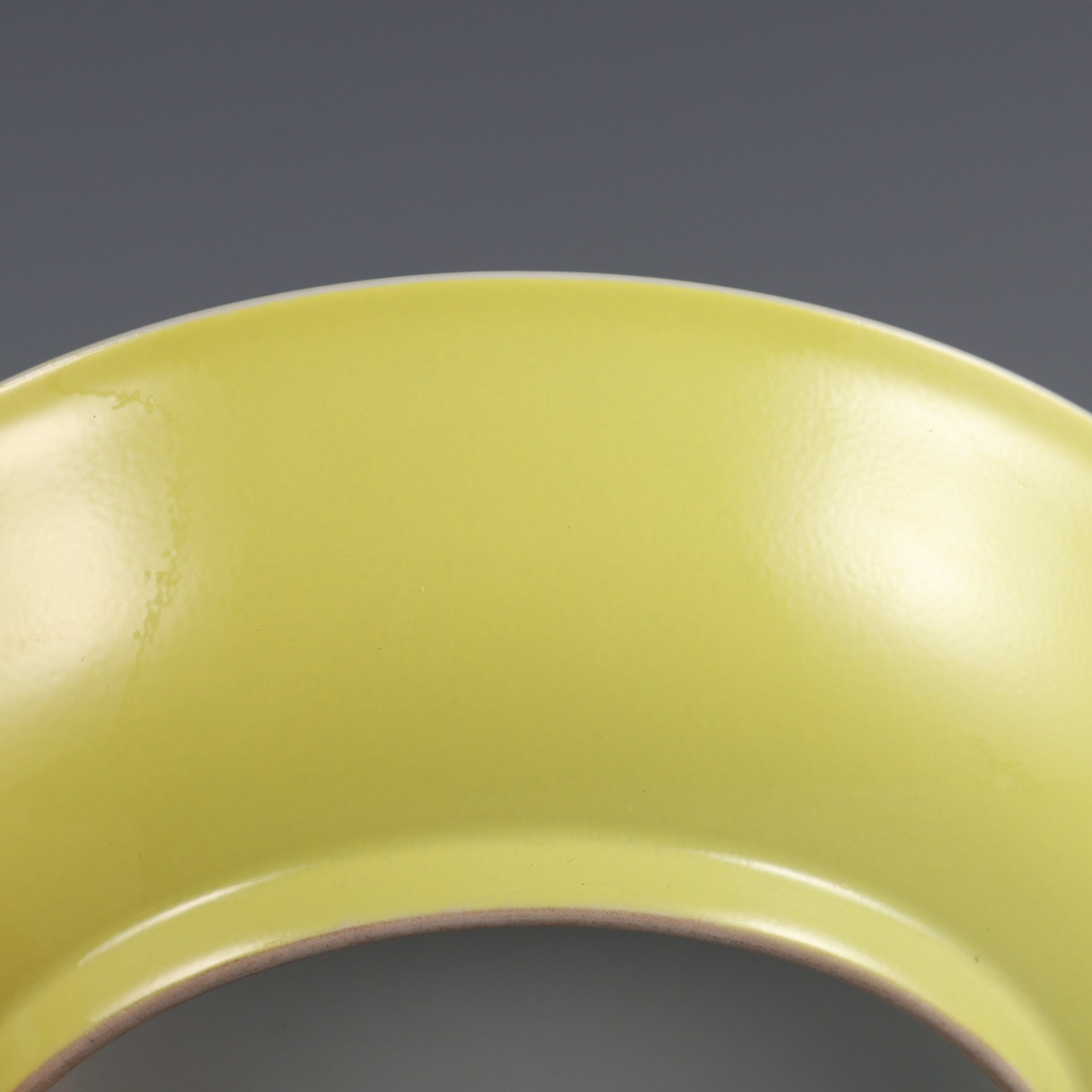 旧藏粉彩花鸟纹柠檬黄釉盘