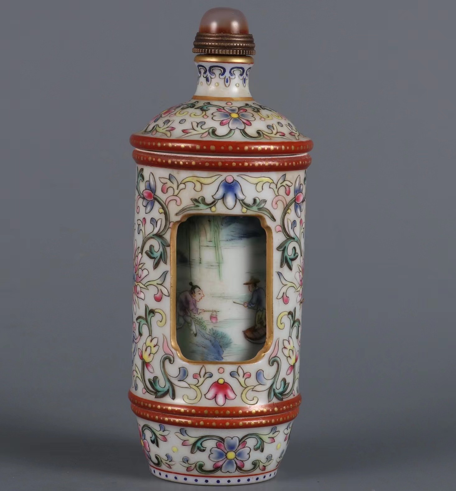 旧藏大清乾隆年制款粉彩人物故事转心鼻烟壶