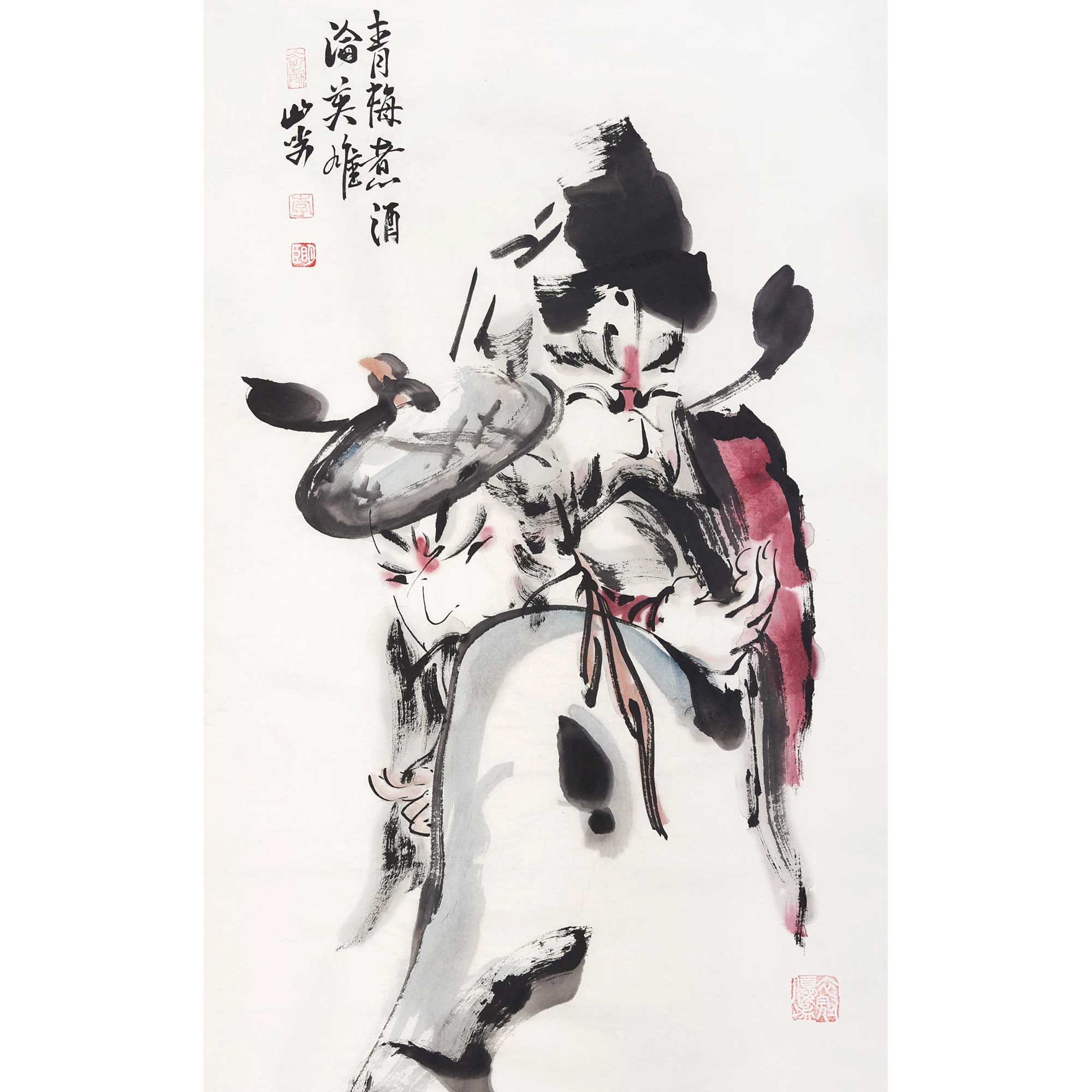 著名表演艺术家 李明臣《青梅煮酒论英雄》人物 99 50 ;李明臣,全国工商联民间文物艺术品商会、当代艺术家研究会戏画艺术委员会会长,影视剧演员、仁美大学堂教授。1947年生于辽宁,1959年进入北京戏曲专科学校学习京剧,1967年进入北京京剧院工作。1993年开始涉足影视艺术,出演过多部影视戏剧。李明臣自幼浸淫于京剧艺术,喜好丹青绘画。京剧是中国文化的精粹,是一门集大成的舞台艺术,从事一辈子京剧行当的李明臣,用毛笔和水墨来塑造出一个行内人眼中的京剧世界。