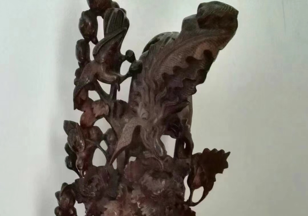 华春先生于1991年受名流委托购进三吨海南黄花梨木材为其打制家俱,精选余料细刻木雕数件,流传到今,木料上乘,雕工细腻,收藏上品。