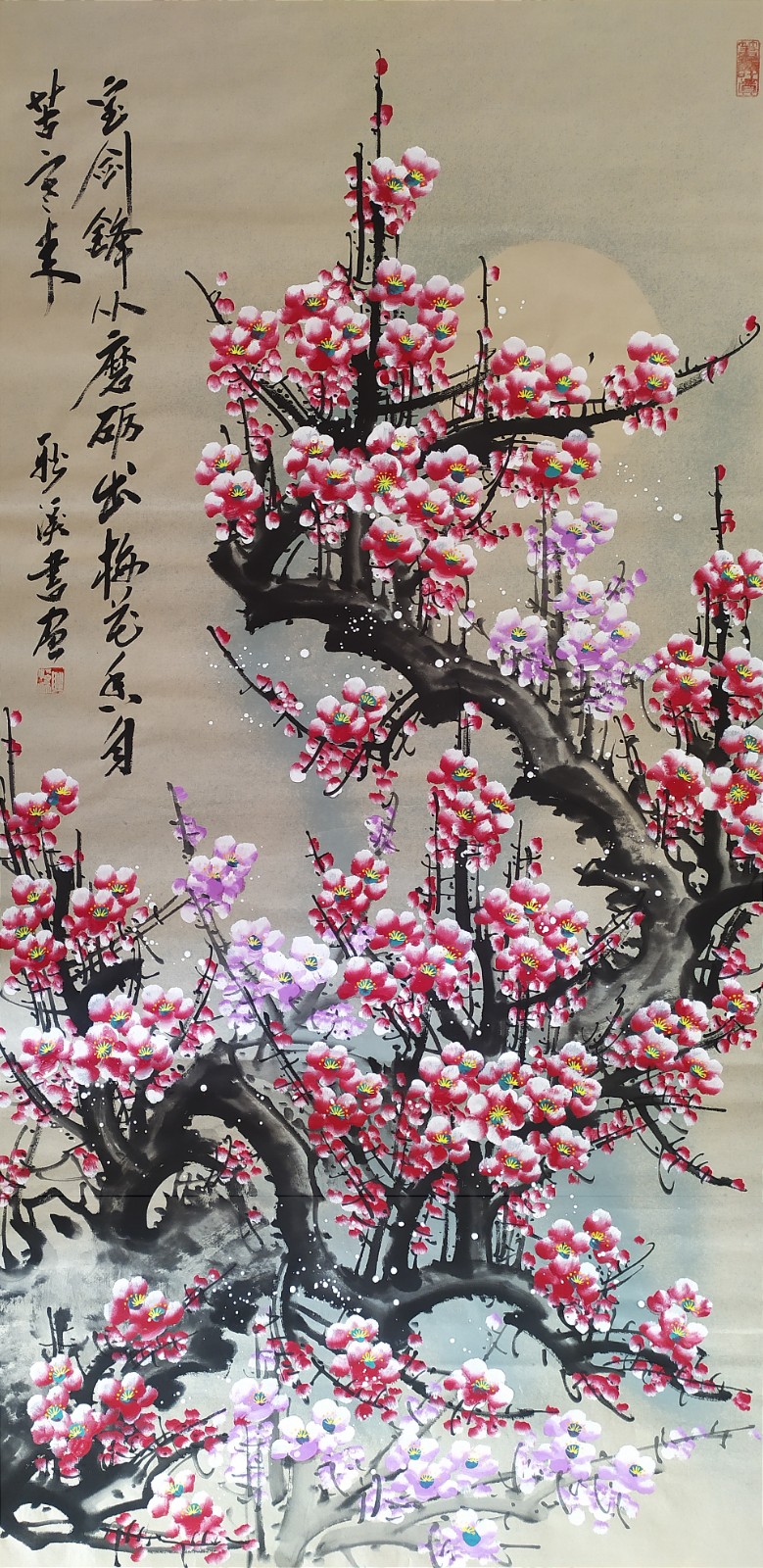 2023年作品,国画《宝剑锋从磨砺出,梅花香自苦寒来》138x68cm