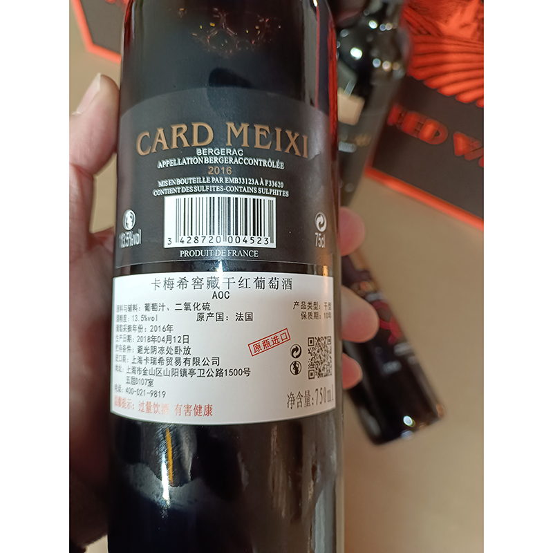 【1箱】卡梅希窖藏干红葡萄酒,法国原瓶进口13.5度AOC等级央视展播品牌 6瓶/箱 S147