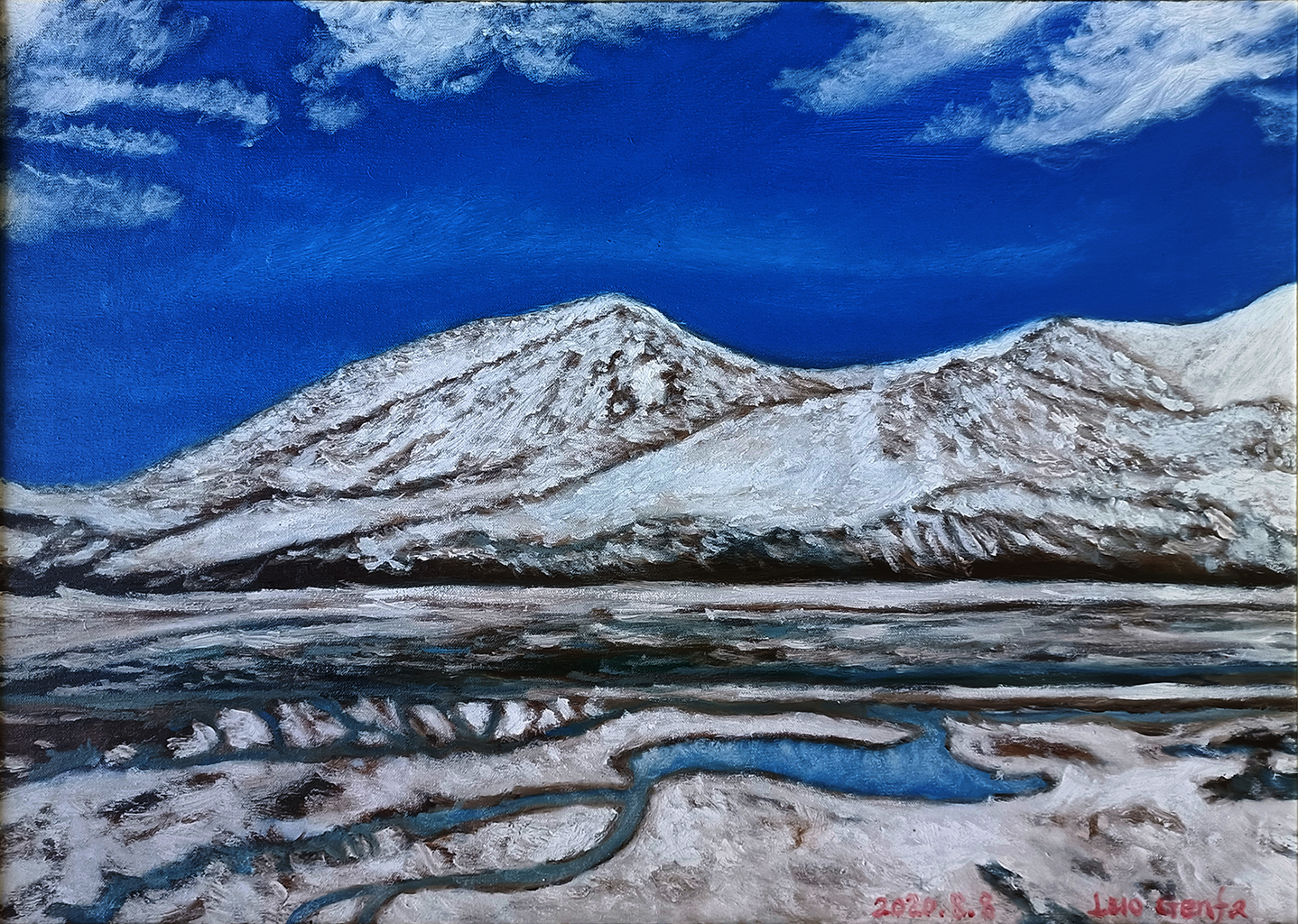 这是我去西藏旅游时在青藏铁路火车上路经唐古拉山看到的壮美风景!我也追求风景写实油画要画出“质感”。