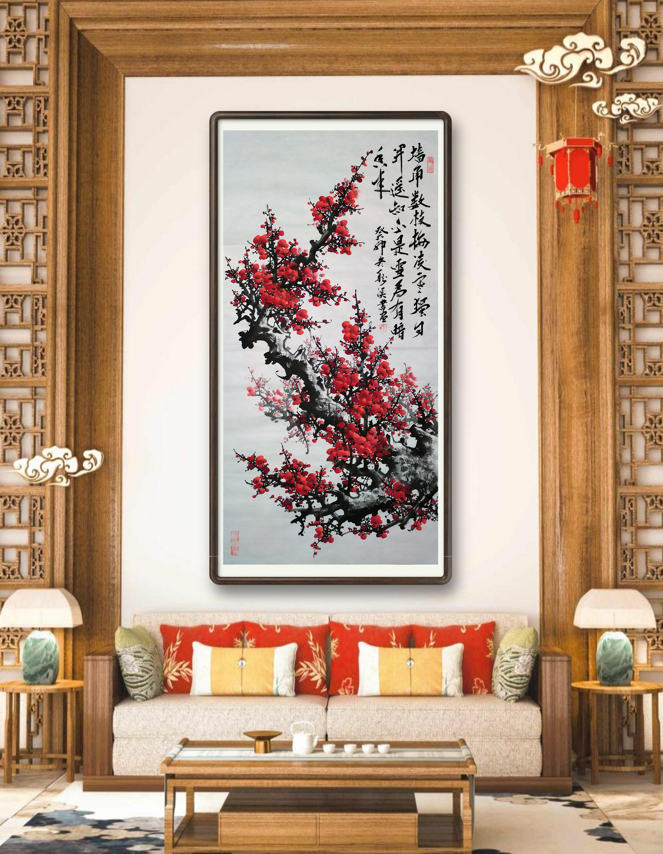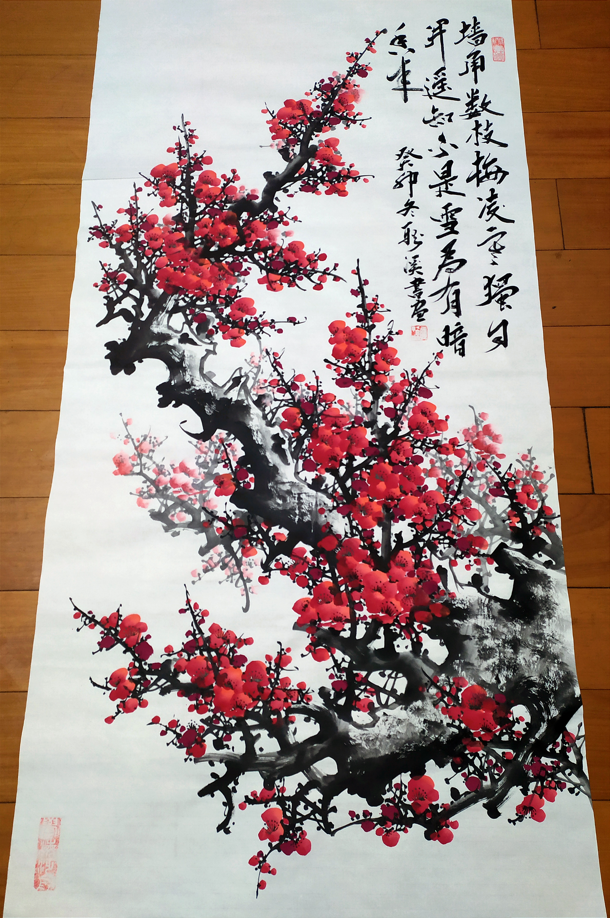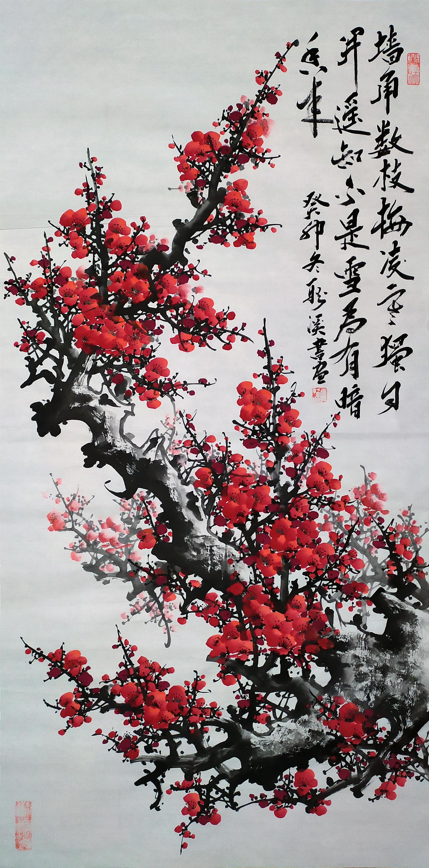 国画梅花《墙角数枝梅》138x68cm