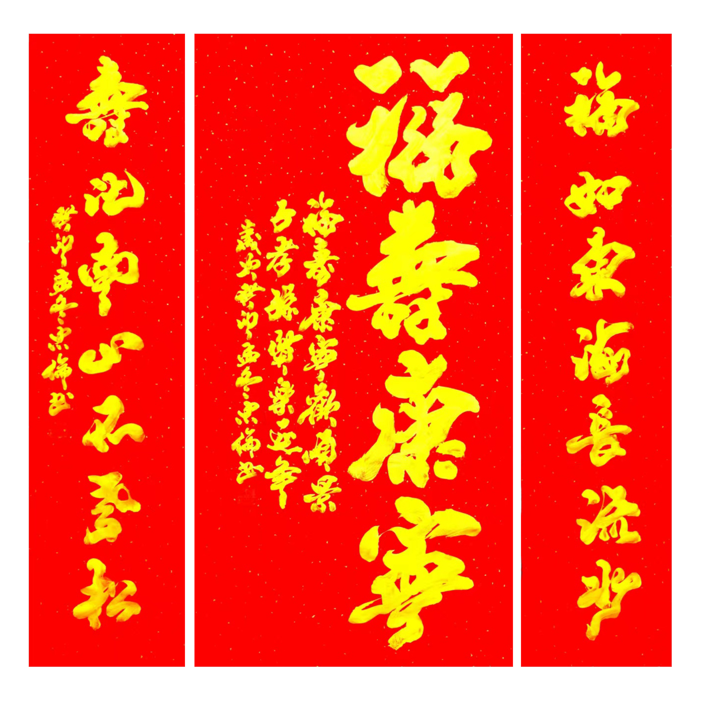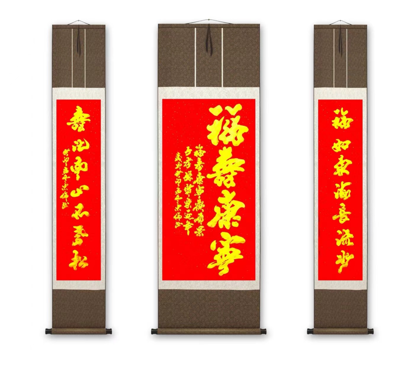 当代书法,2024年张忠伦书法《福寿康宁》138x68cm+对联138x34cmx2《福如东海长流水,寿比南山不老松》