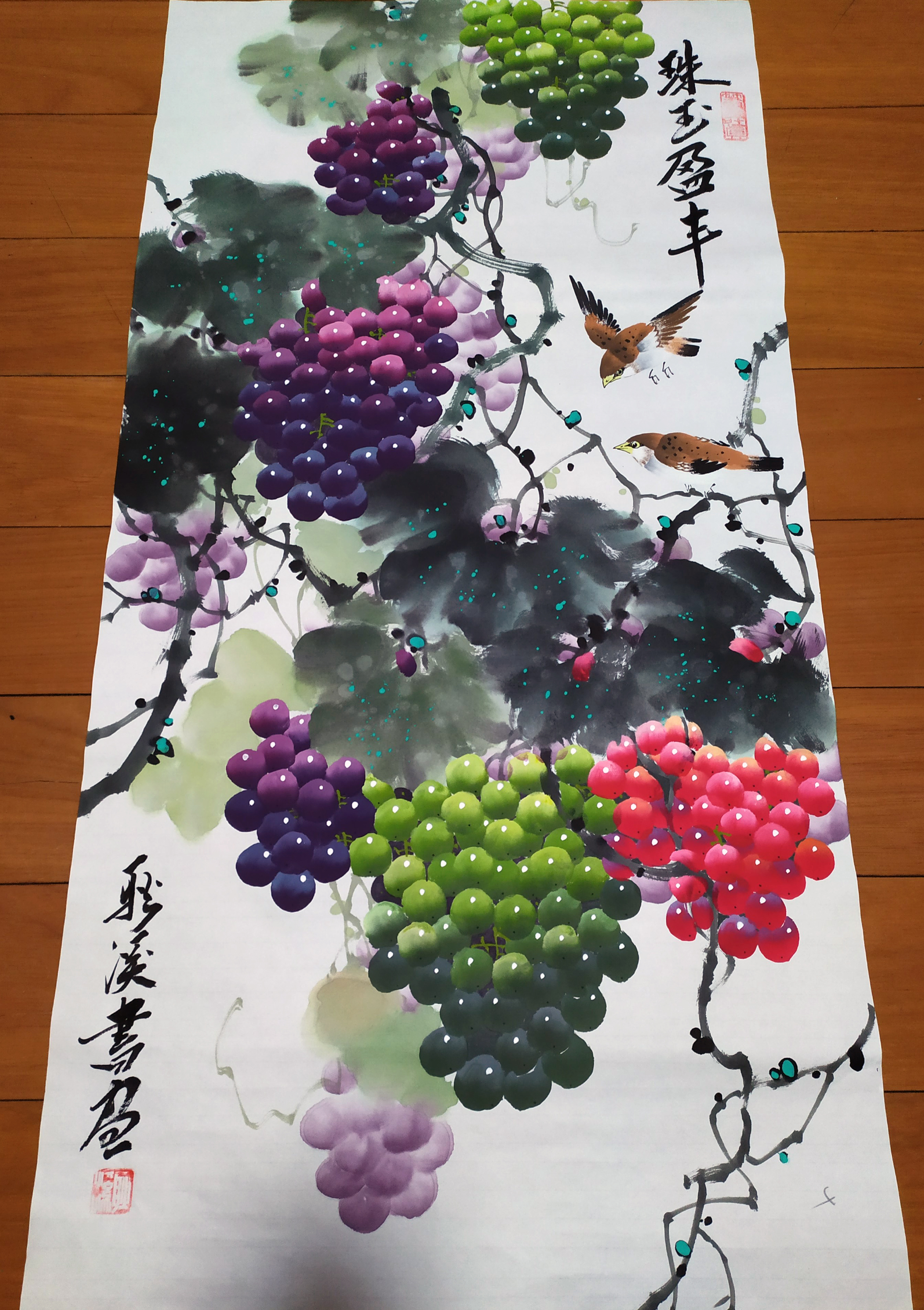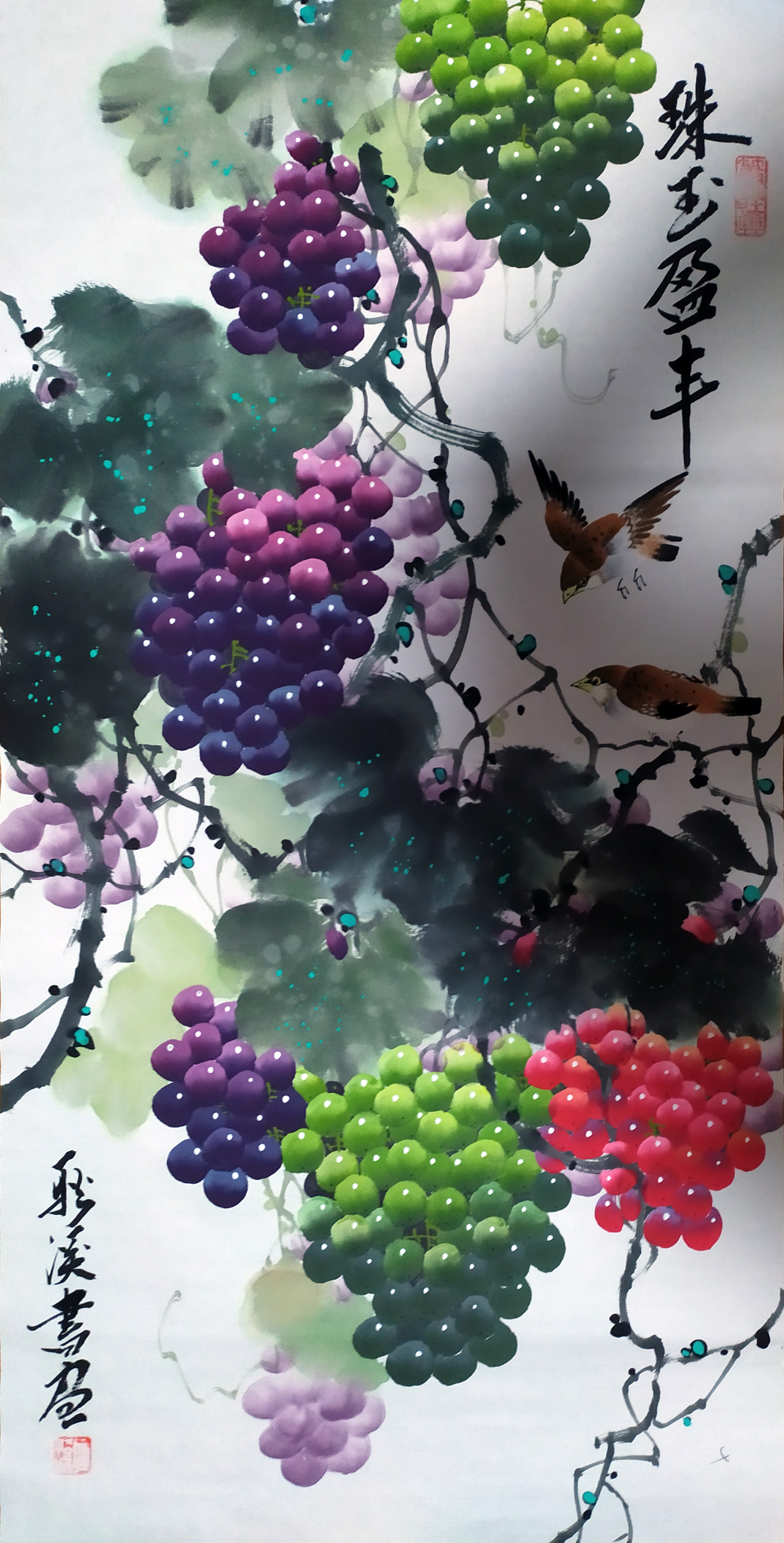 2024年,当代作品,耿溪国画葡萄《珠玉盈丰》100x50cm