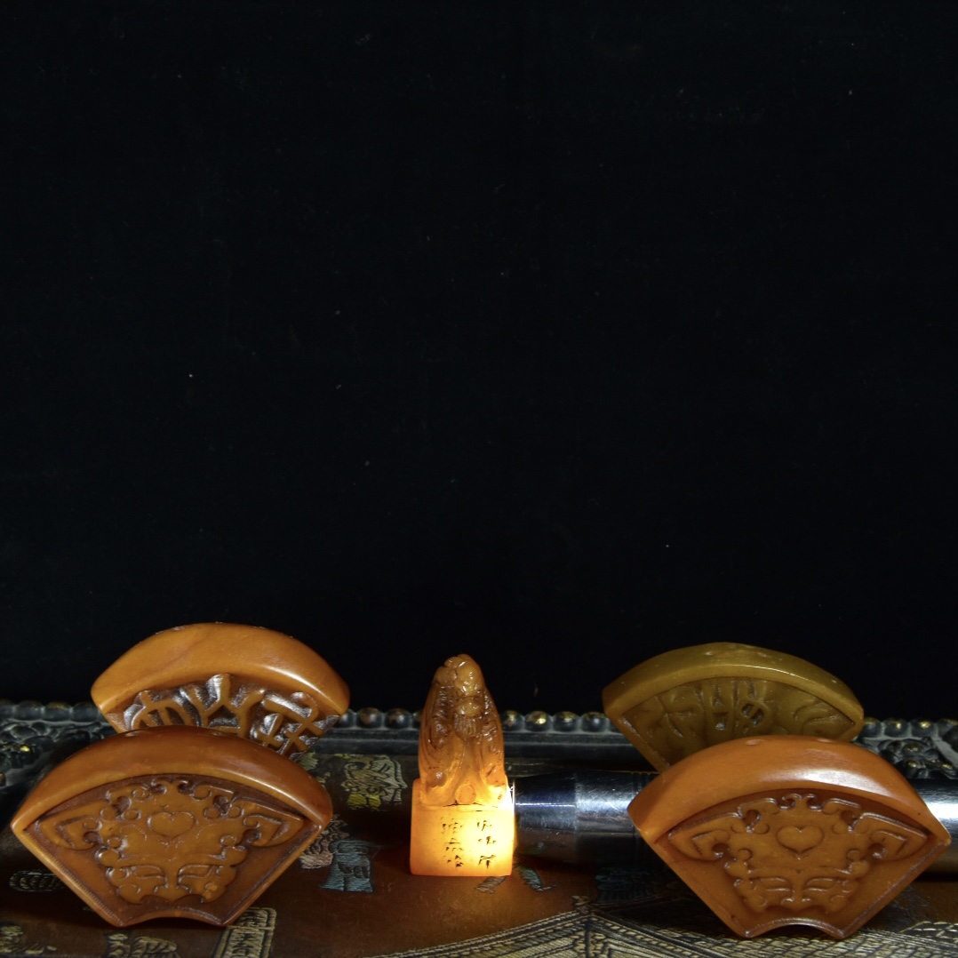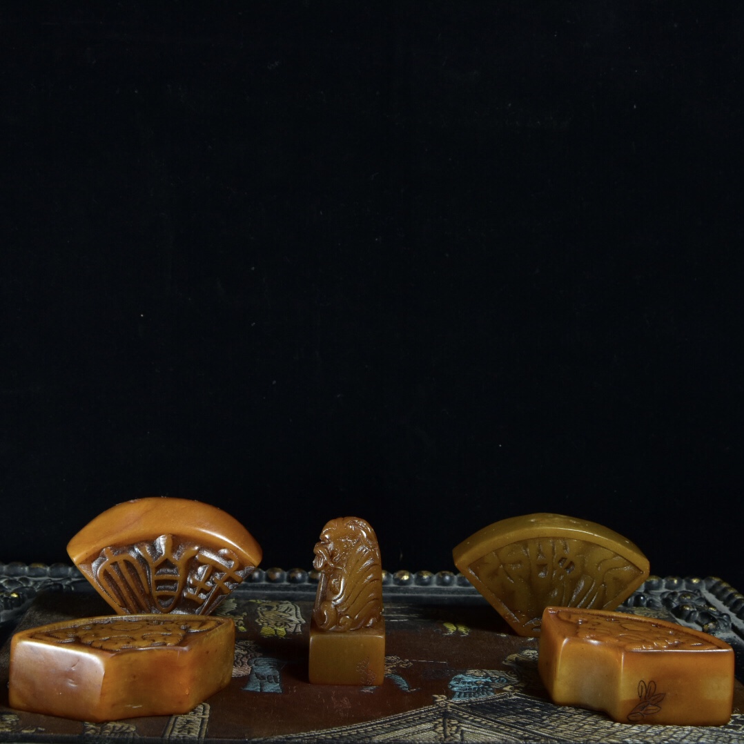 回流 木盒装 寿山石田黄石 坤宁宫藏【文房五宝】套章 GH415