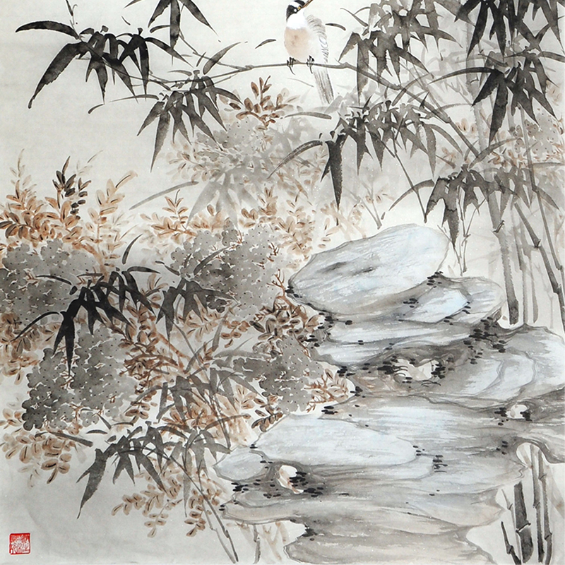 附收藏证书 与徐悲鸿、张书旗三人被称为画坛“金陵三杰”竹圣 柳子谷【清风长寿】F2321