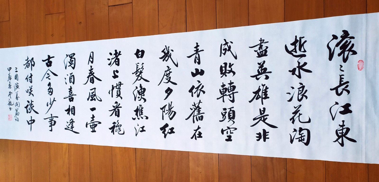 中国书法家协会会员,云龙作品《滚滚长江东逝水》180x50cm