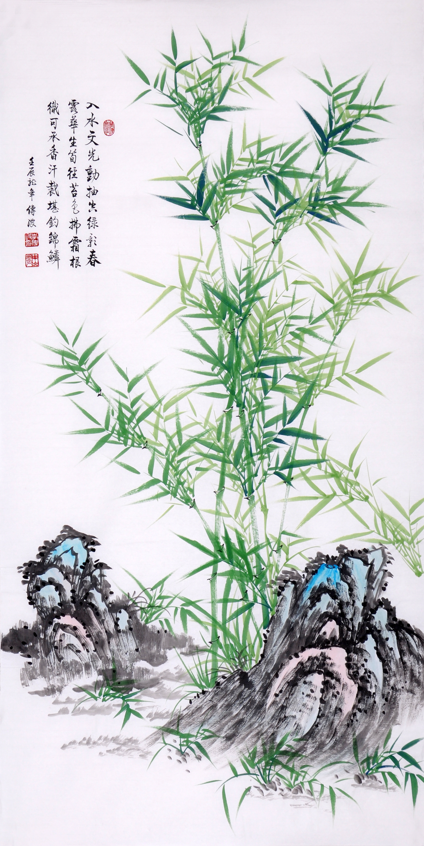 附收藏证书 合影 中书协理事 启功弟子 李传波【咏竹图】A4160