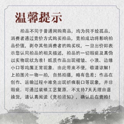 4.2 参与竞拍活动的商品由商家提供,并由商家进行配送及相应的售后服务。用户参与竞拍活动前应仔细查看竞拍活动页面对竞拍商品的信息、商品描述介绍。且知悉认可因摄影、显示等造成描述作品的色调等与原物有误差的,以原物为准。
