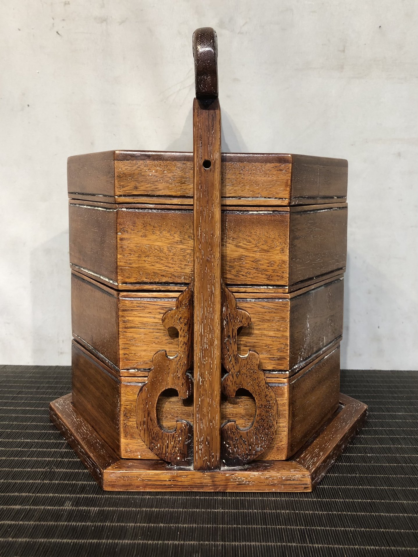 黄花梨镶嵌贝壳喜上眉梢食盒 JZ785