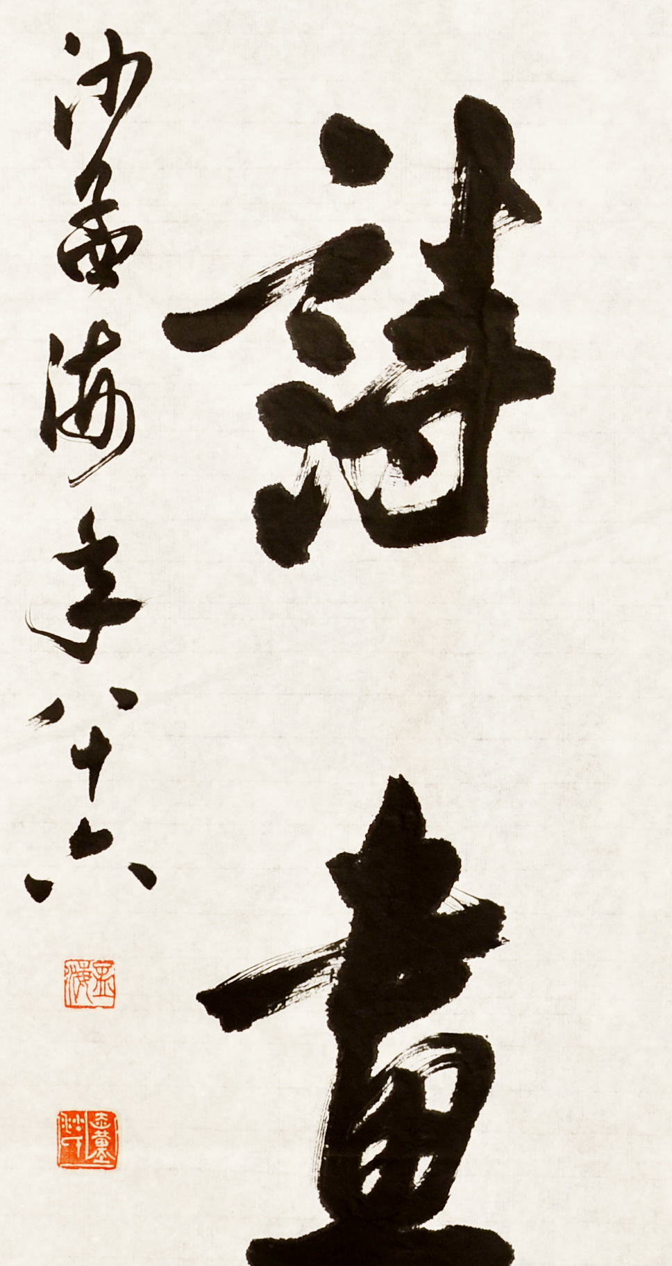沙孟海,原名文若,字孟海,号石荒、沙村、决明。鄞县沙村人,出生于浙江鄞县(今浙江省宁波市鄞州区)。二十世纪书坛泰斗。于语言文字、文史、考古、书法、篆刻等均深有研究。毕业于浙江省立第四师范学校。 曾任浙江大学中文系教授、浙江美术学院教授、西泠印社社长、西泠书画院院长、浙江省博物馆名誉馆长、中国书法家协会副主席。