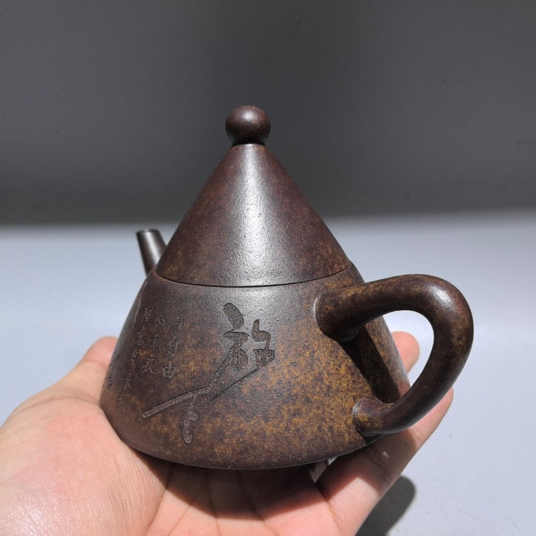 【柴烧窑变僧帽壶】原矿龙骨金砂 280cc ZX69