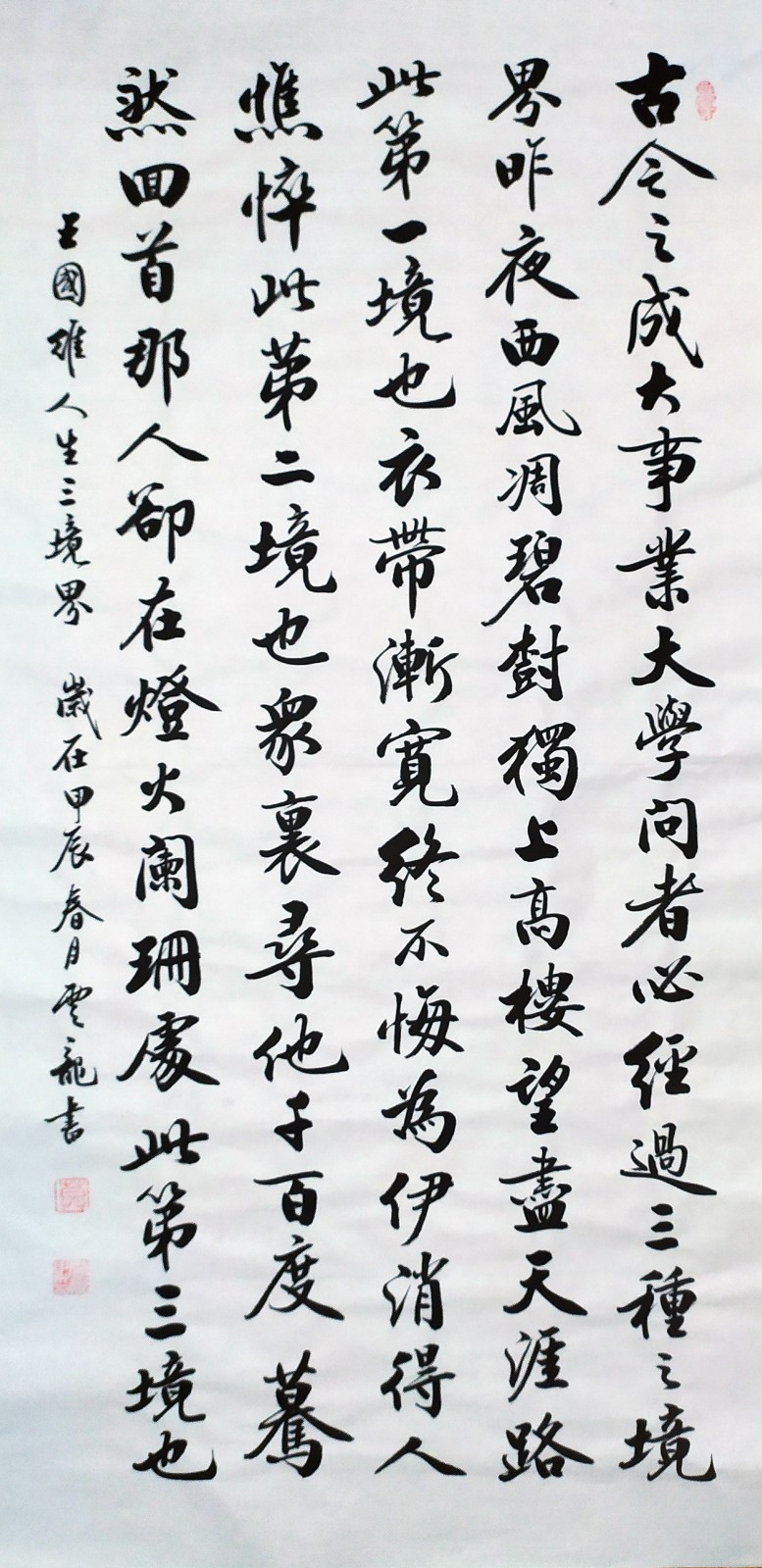 中国书法家协会会员,云龙作品《人生三境界》138x68cm