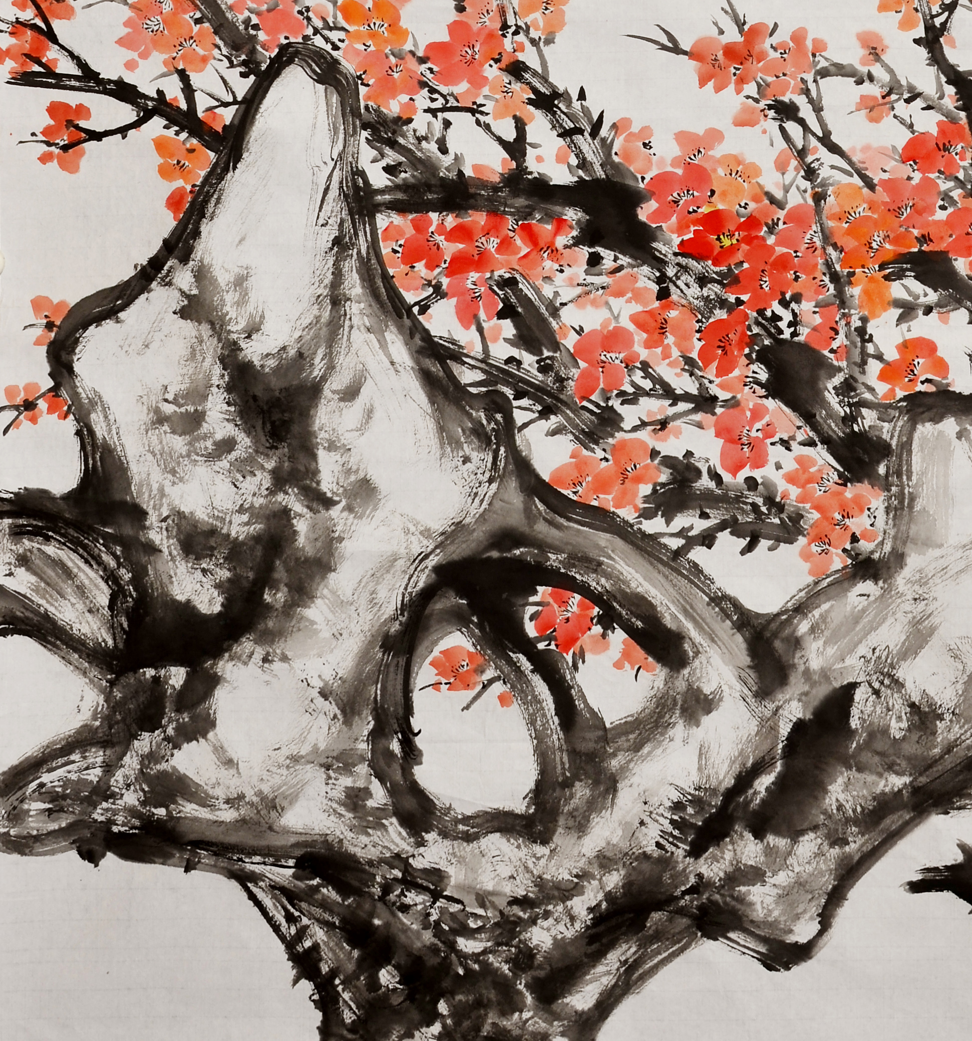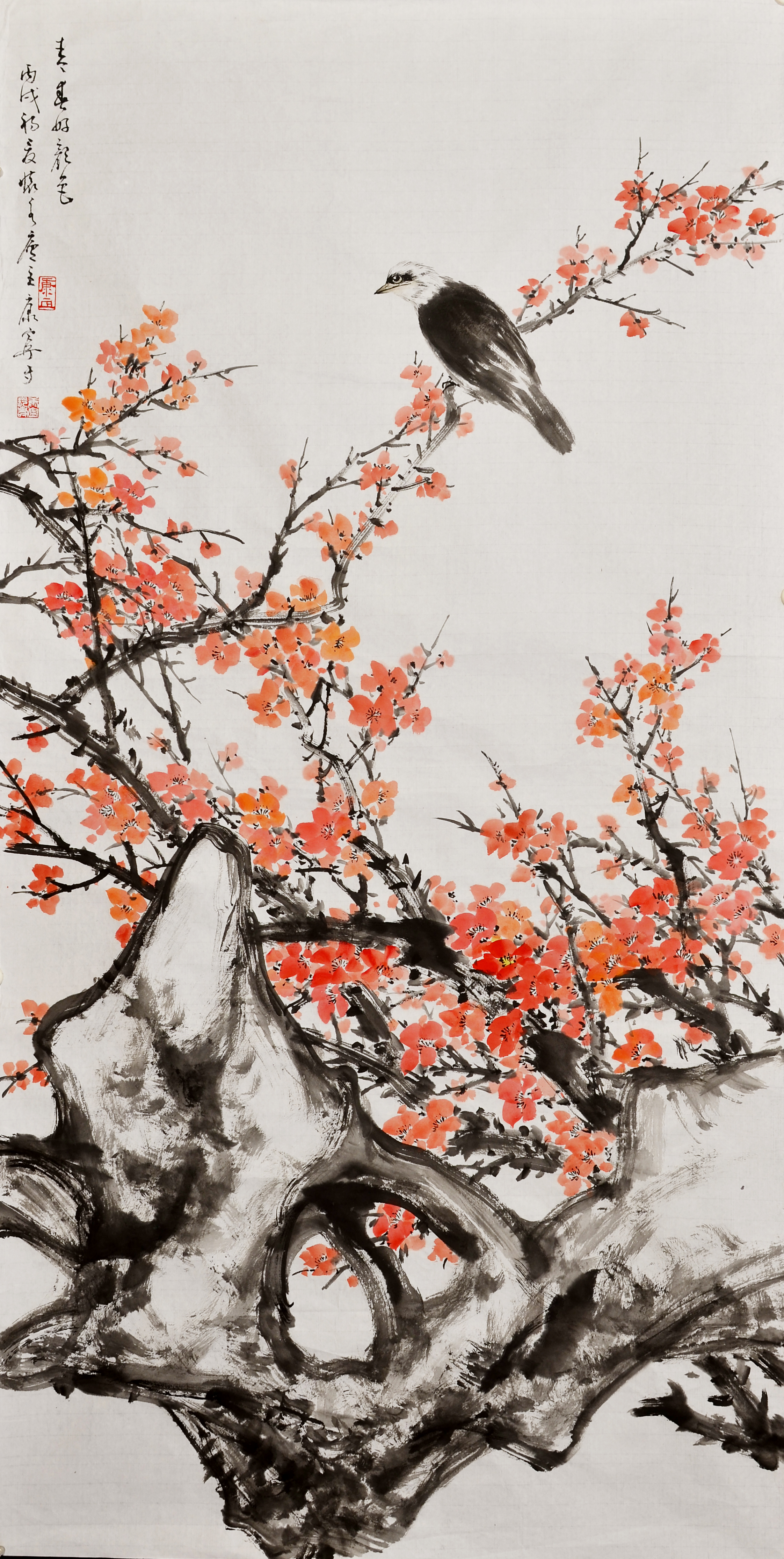 康宁 1938年生于辽宁,1948年迁居北京,中国当代著名大写意花鸟画家,国画大师李苦禅先生的亲授弟子,中国美术家协会会员。的大写意画,赋形简洁精练,用笔沉郁痛快,酣畅淋漓,大气磅礴,墨色深厚多变。除向苦禅大师学习外,他还上溯文人画之源的陈白阳、徐青藤、八大等明清大师作品,兼取众家之长,合一炉二冶之。
