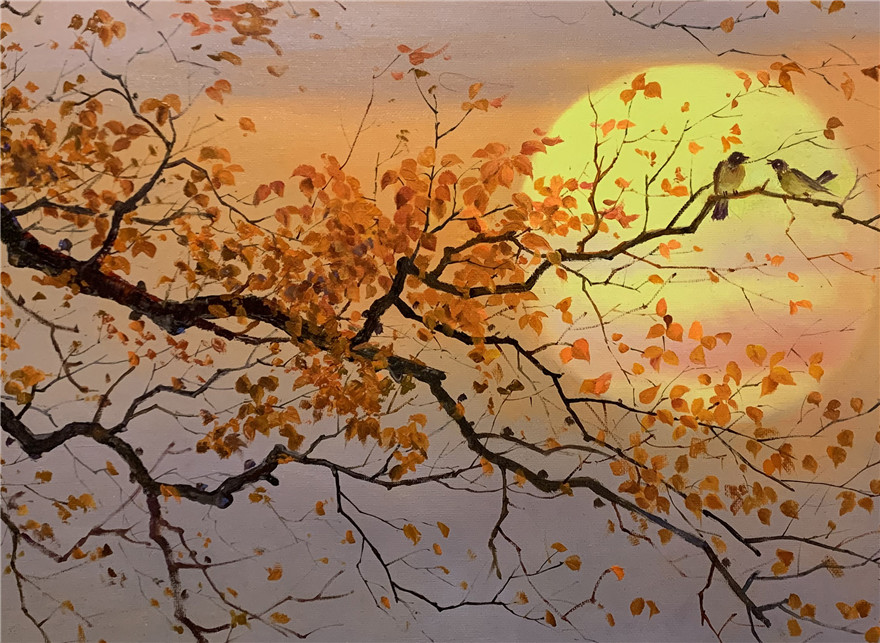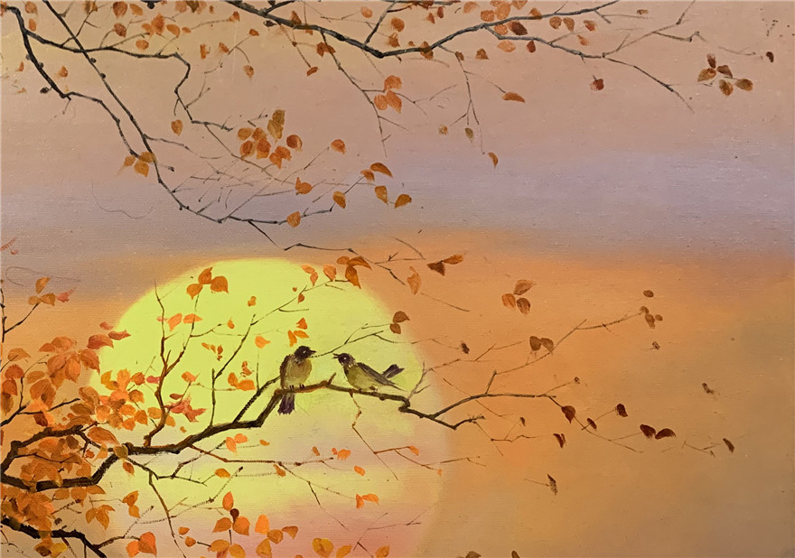 朝鲜油画 金青日 《枝头秋韵》纯手绘