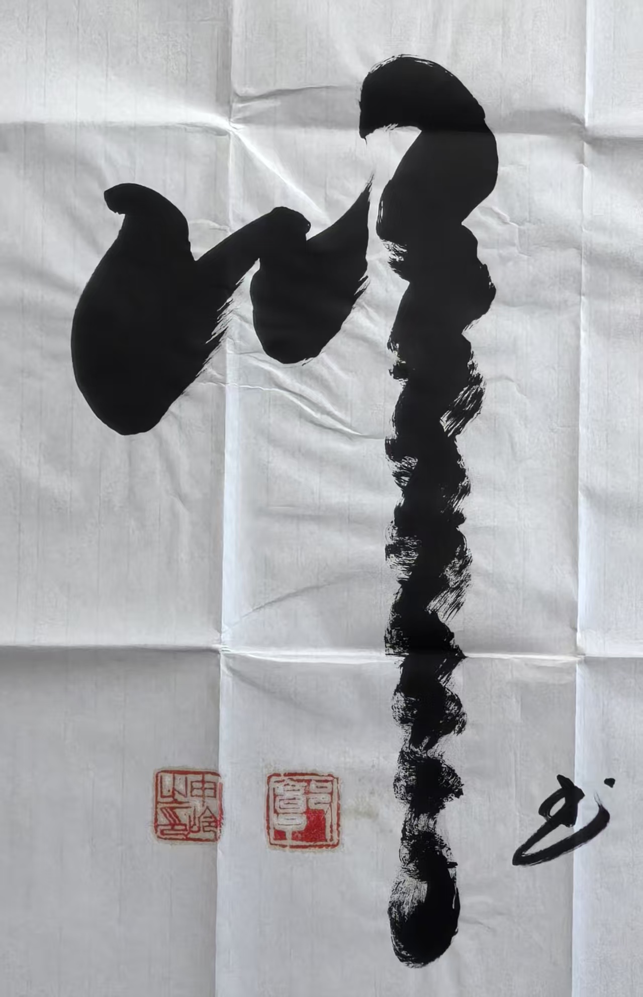 郭申岭,先后师承唐玉润、欧阳中石、张海先生。被誉为 “中原榜书王”、〝神奇的悬笔书画家”,其书法真、草、隶、篆、行五体皆能,多次在国内外书画大赛上获奖,井被《书画家百科》收录,榜书作品 《观海听涛》被中国国家博物馆永久收藏。