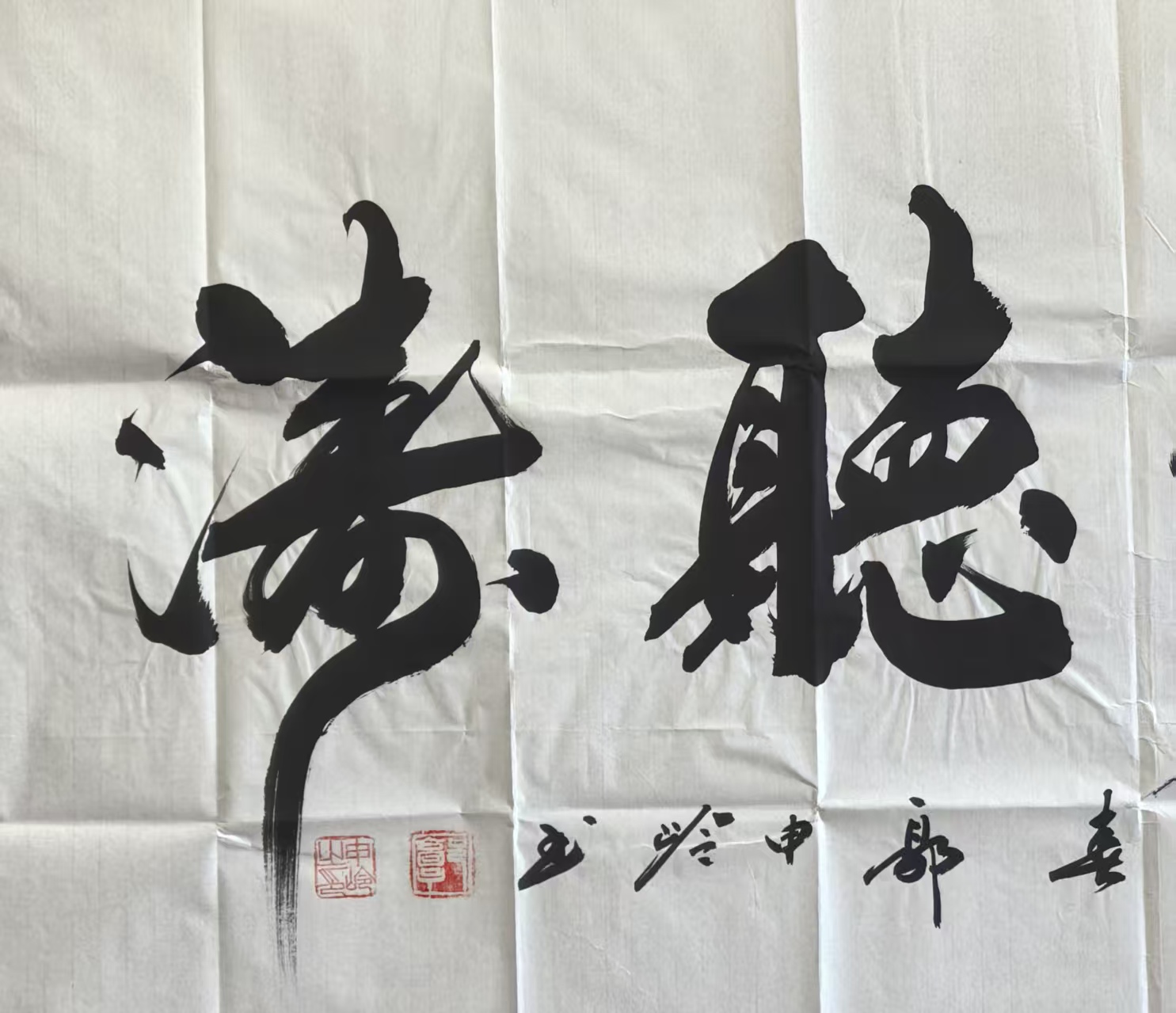 郭申岭,先后师承唐玉润、欧阳中石、张海先生。被誉为 “中原榜书王”、〝神奇的悬笔书画家”,其书法真、草、隶、篆、行五体皆能,多次在国内外书画大赛上获奖,井被《书画家百科》收录,榜书作品 《观海听涛》被中国国家博物馆永久收藏。