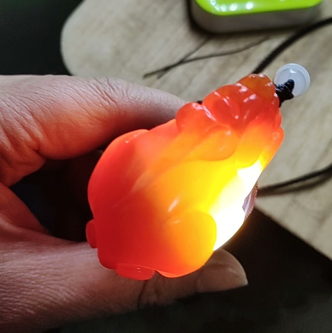 天然和田玉,打灯透,红黄渐变色。