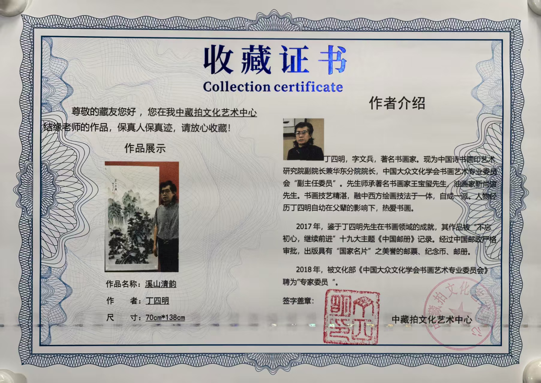 丁四明,中国当代山水艺术巨匠,天津人民美术出版社-《中国近现代名家画集》“大红袍”艺术家、中国著名功勋艺术家,新时代人民艺术家,中国当代书画艺术领军人物,享受国家津贴。
