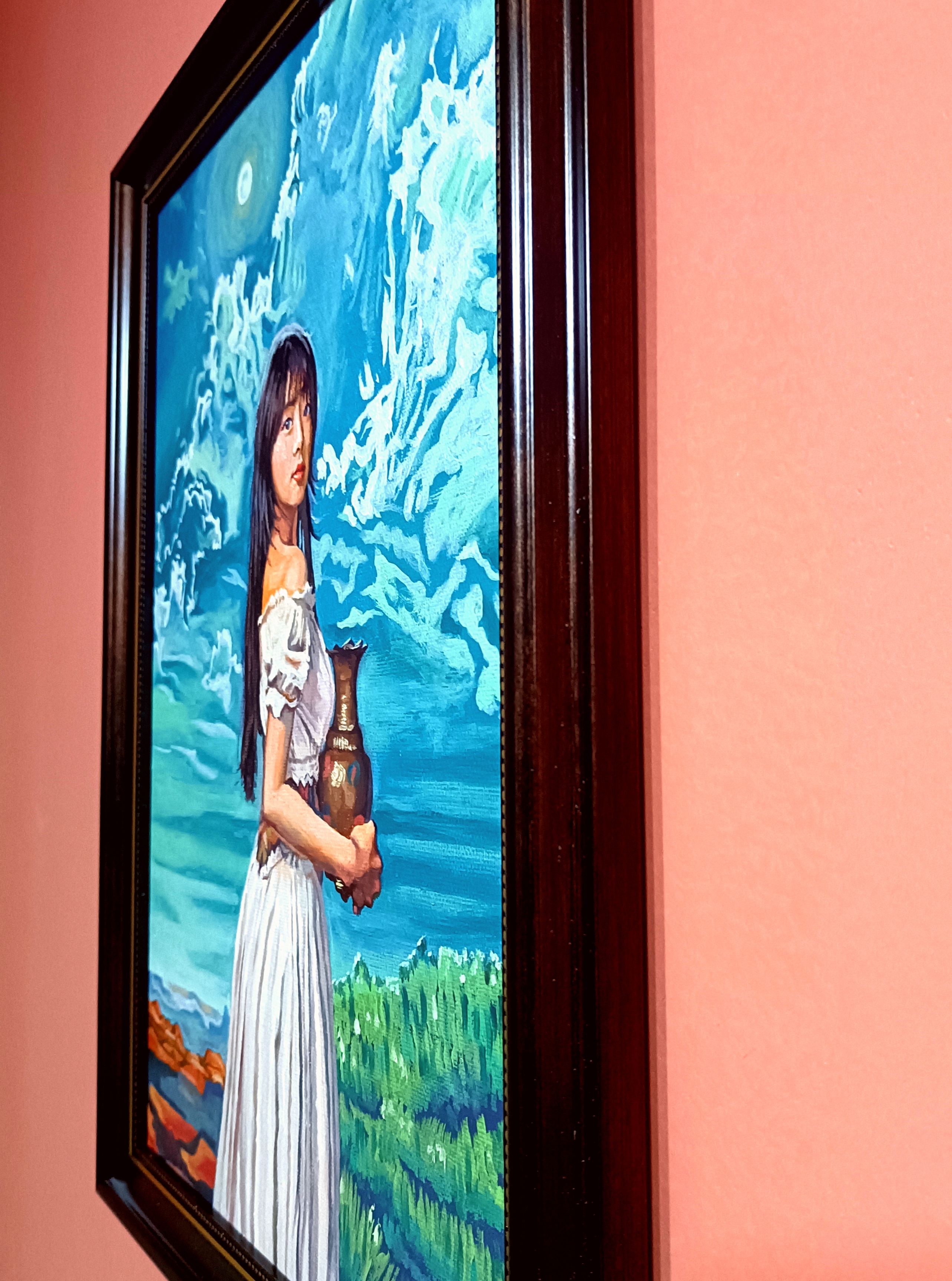 此作品是为了致敬大师安格尔而创作,依旧运用了我自己的风格来表现,只不过这次是大面积的冷色调。此作品没有画水但叫做泉是为了表现东方人的内敛,我们都不是把东西像西方那样放在明面上一目了然而是蕴藏在里,让欣赏者用东方人的角度把泉水完全收敛到水瓶里面,它既是哲学,又是中国文化的藏拙,苍劲中的优雅,温情里的疏离!表现写实的手法我开始结合东方文化中的韵律把它极致的表现出来!