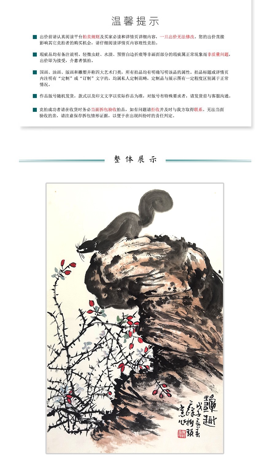 4.2 参与竞拍活动的商品由商家提供,并由商家进行配送及相应的售后服务。用户参与竞拍活动前应仔细查看竞拍活动页面对竞拍商品的信息、商品描述介绍。且知悉认可因摄影、显示等造成描述作品的色调等与原物有误差的,以原物为准。