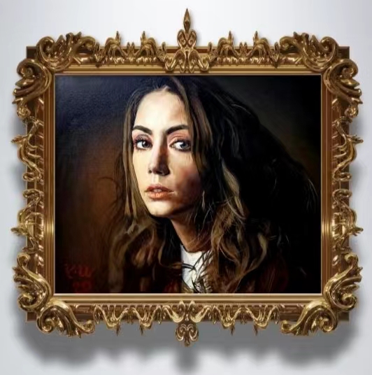 这幅画是向古典绘画致敬的一幅作品,利用写实的手法表现出古典人物肖像,包括表情与状态都显示出古典主义的精神!