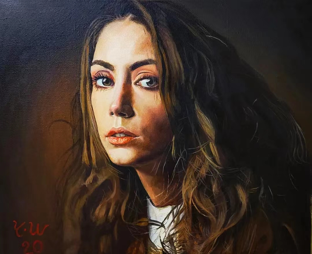 这幅画是向古典绘画致敬的一幅作品,利用写实的手法表现出古典人物肖像,包括表情与状态都显示出古典主义的精神!