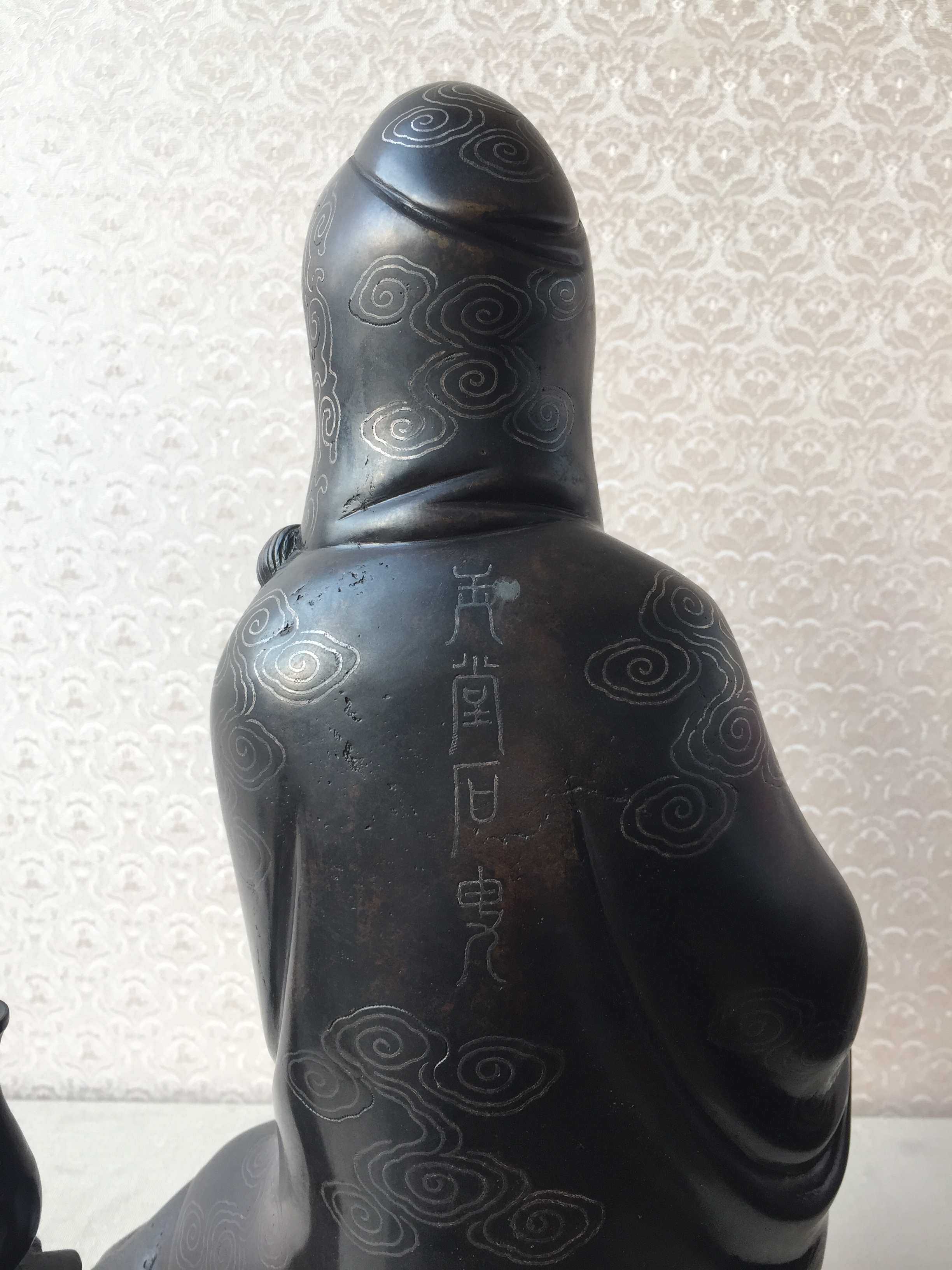 说明:石叟祖籍福州,为明代崇祯时僧人,姓氏里居不详,明人笔记《虞山三峰寺志》、《梦窗小牍》中有关于石叟的着录,是明晚期最为著名的冶炼专家和艺术雕塑大师。此拍品即为一玉堂石叟款的水月观音像。水月观音出自元•王实甫《西厢记》第一本第一折:“兰麝香仍在,佩环声渐远。东风摇曳垂杨线,游丝牵惹桃花片,珠帘掩映芙蓉面。道是河中开府相公家,南海水月观音现。” |