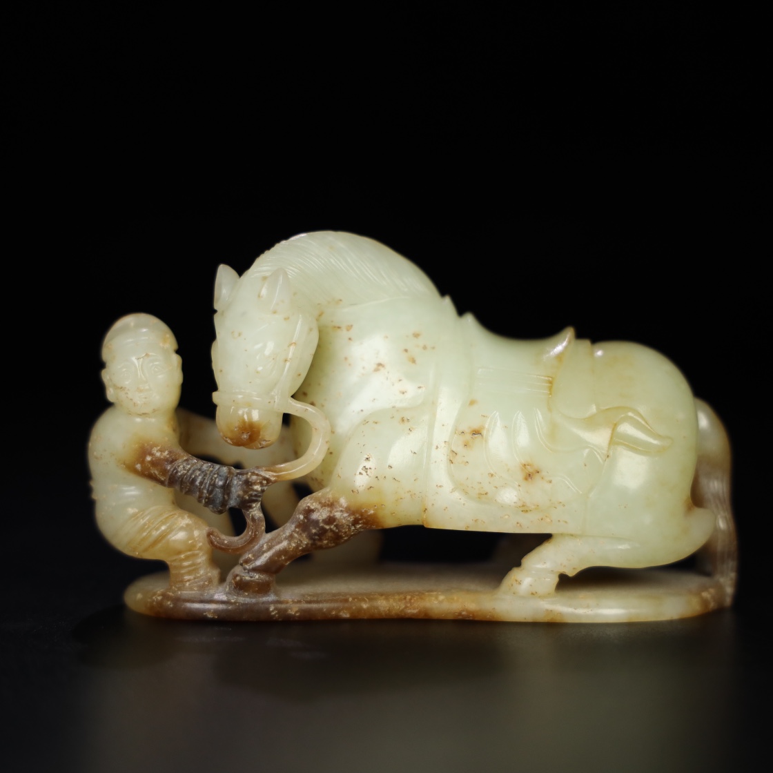 和田玉把件(走马上任),玉质细腻油润,雕工精湛流畅,视觉饱满圆润,包浆老道,细节如图所示,尺寸高 6.7厘米,长 11.5厘米,宽 4.5厘米,重 351克!