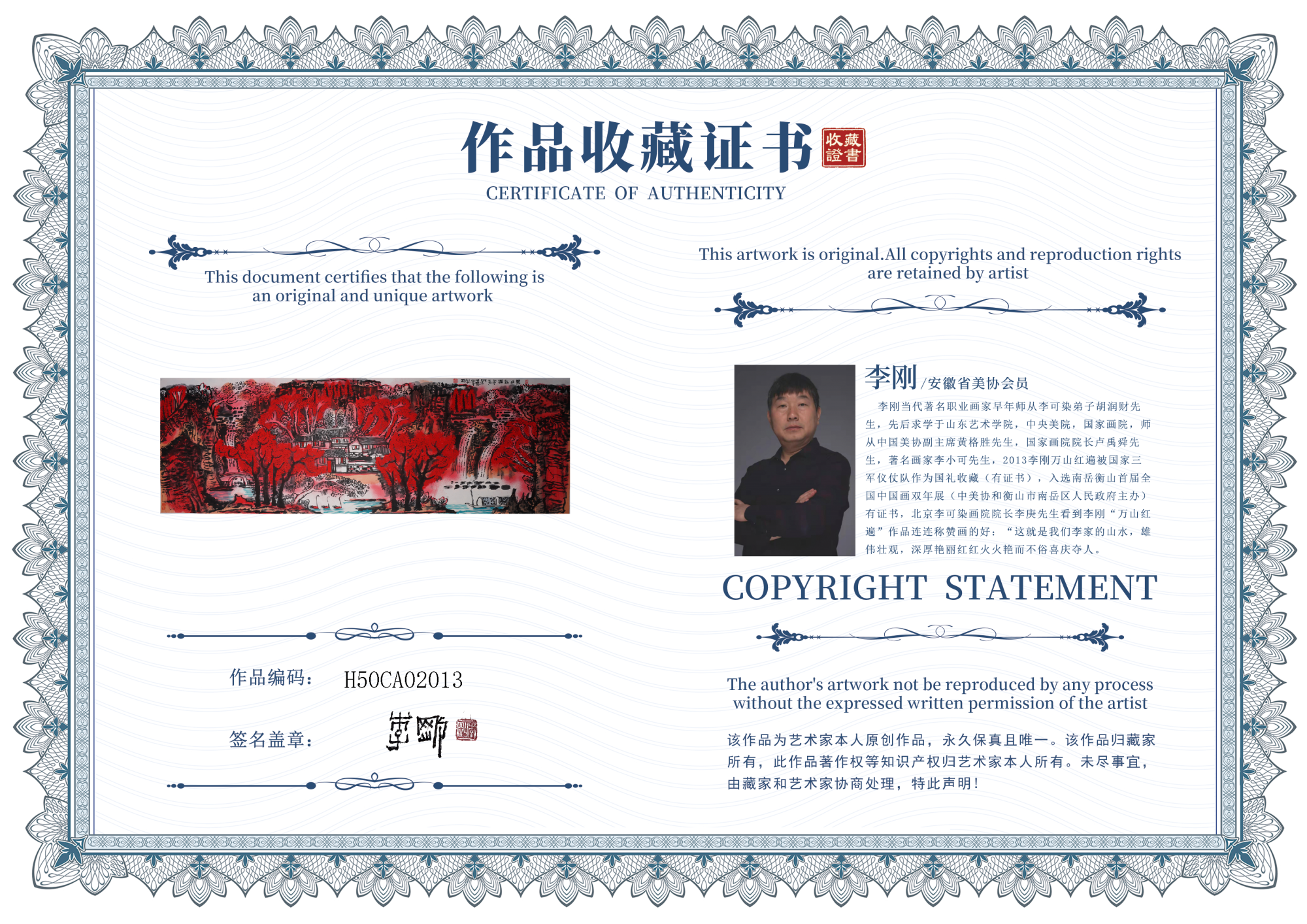 【作者简介】李刚,1970年生,祖籍安徽淮北,当代著名实力派山水画家,毕业于山东美术学院, 2008年考入中国国家画院山水画高级研究生班,师从著名画家中国美协副主席黄格胜先生。现为中国美术家协会、安徽美术家协会、北京国画艺术家协会会员。北京搜奇峰书画院院长,中国大风堂艺术研究院专职画家,国家画院黄格胜工作室画家。国家画院卢禹舜工作室山水画专业画家,国际王羲之书画艺术研究院副院长。河北省安徽商会常务副会长,2013担任中华书画艺术家联合会常务副主席。