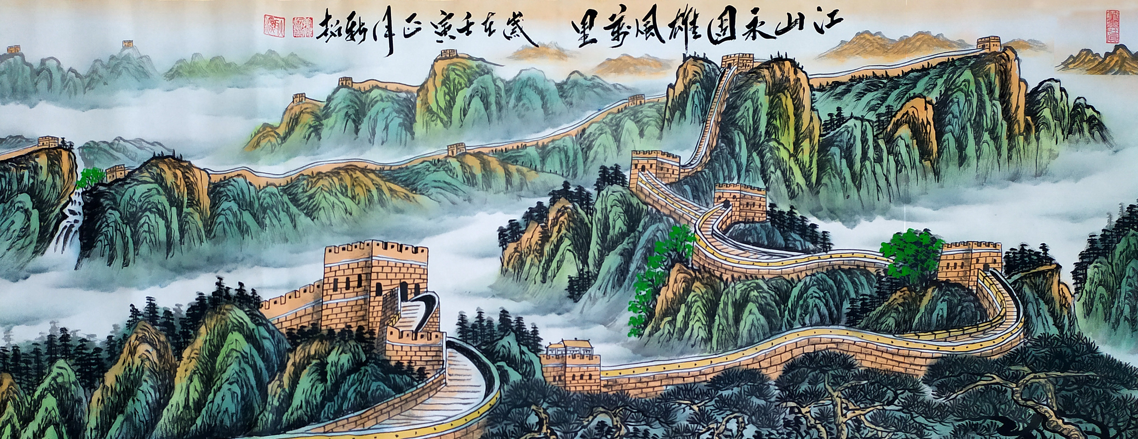 2022年作品,国画长城《江山永固》180x70cm