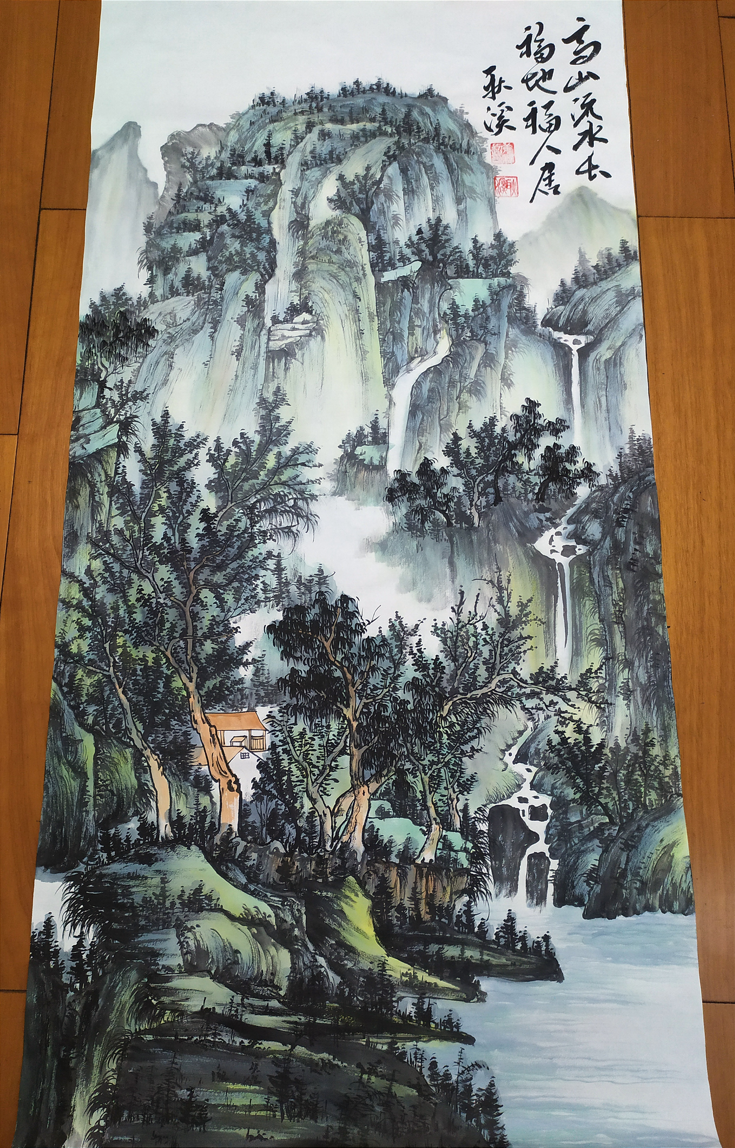 2023年作品,国画《高山流水长,福地福人居》138x68cm