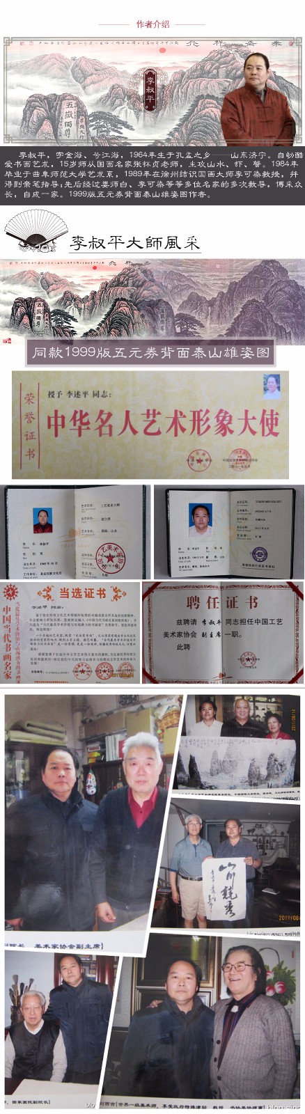附合影 五元面值山水画作者 国家书画院副院长 李叔平【万山红遍层林尽染】A3380八尺