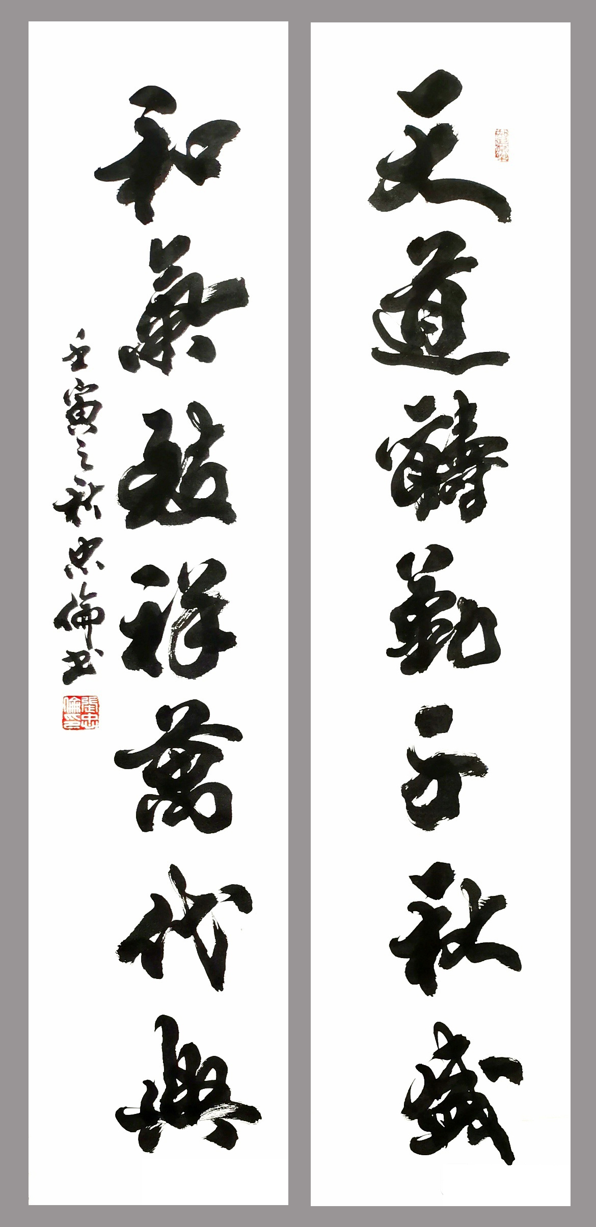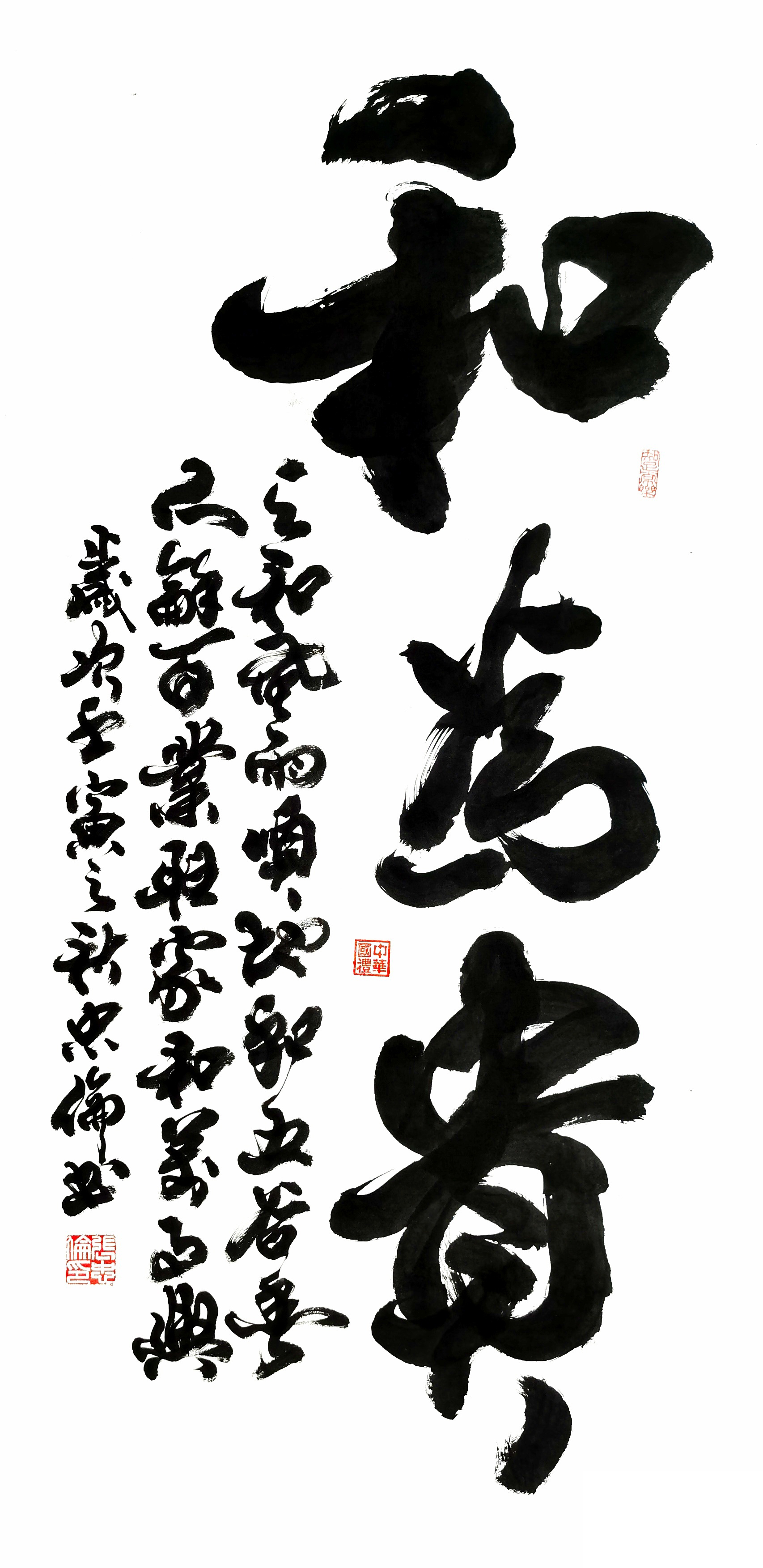 对联《天道酬勤千秋盛,和气致祥万代兴》138cmx34cmx2《和为贵》138x68cm
