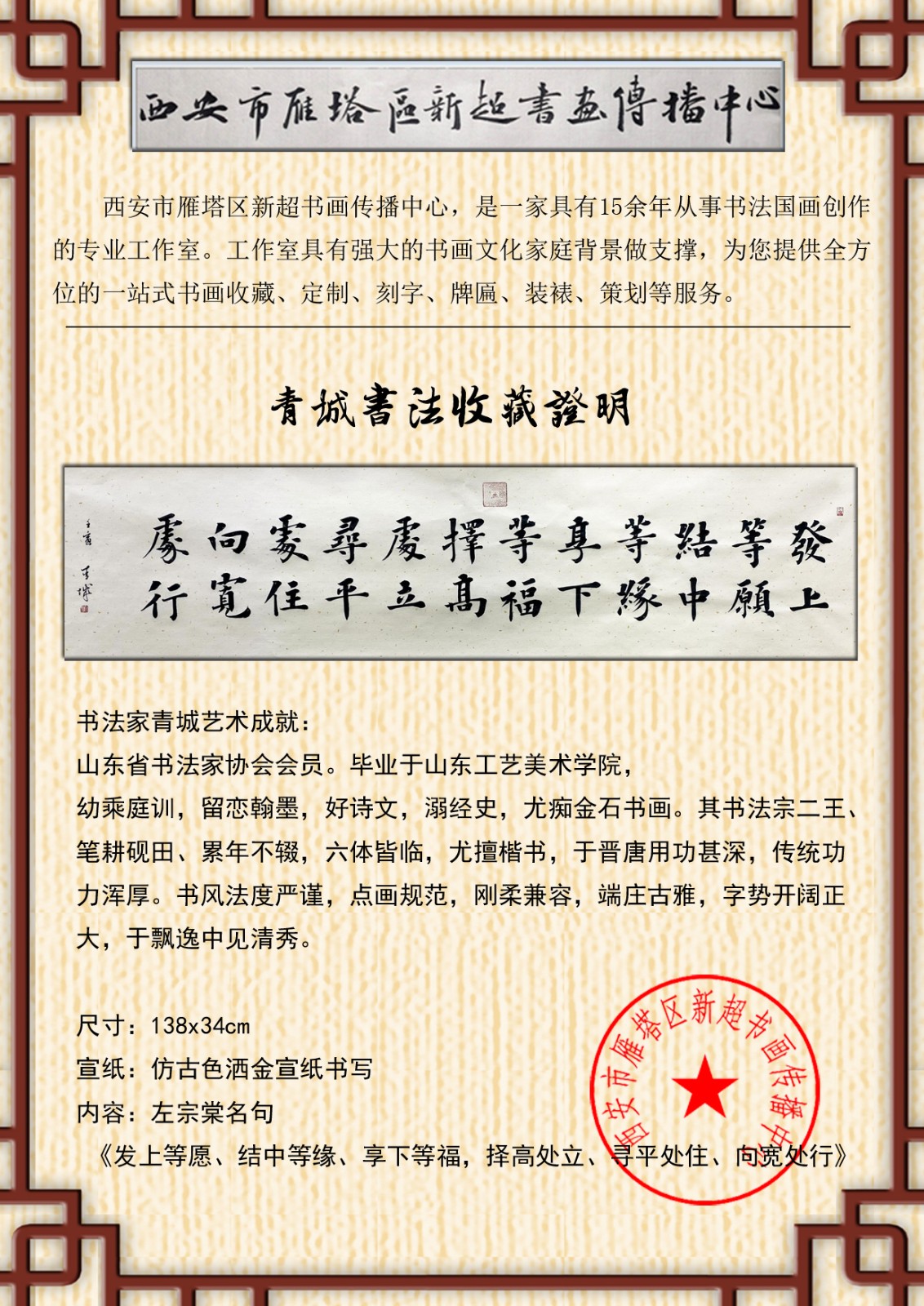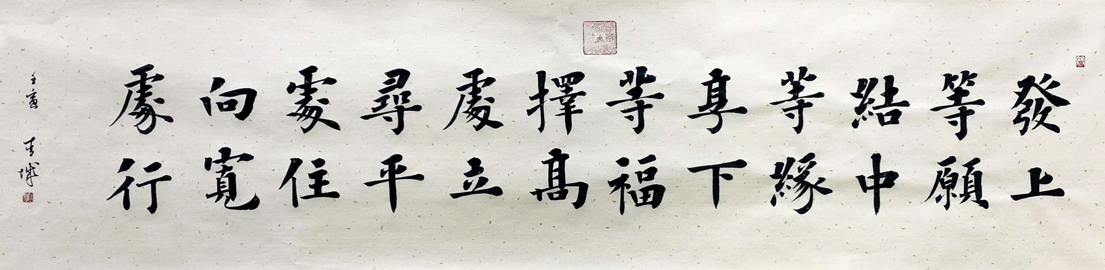 青城楷书《发上等愿》138x34cm洒金仿古宣纸