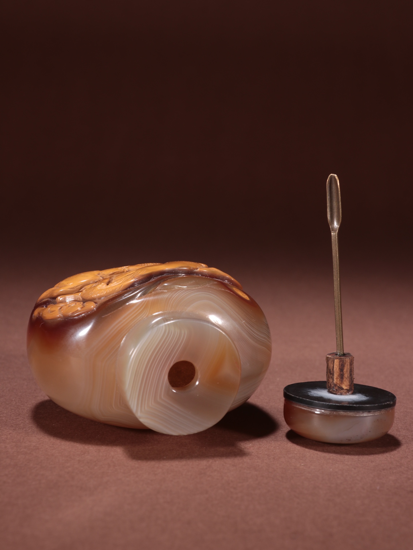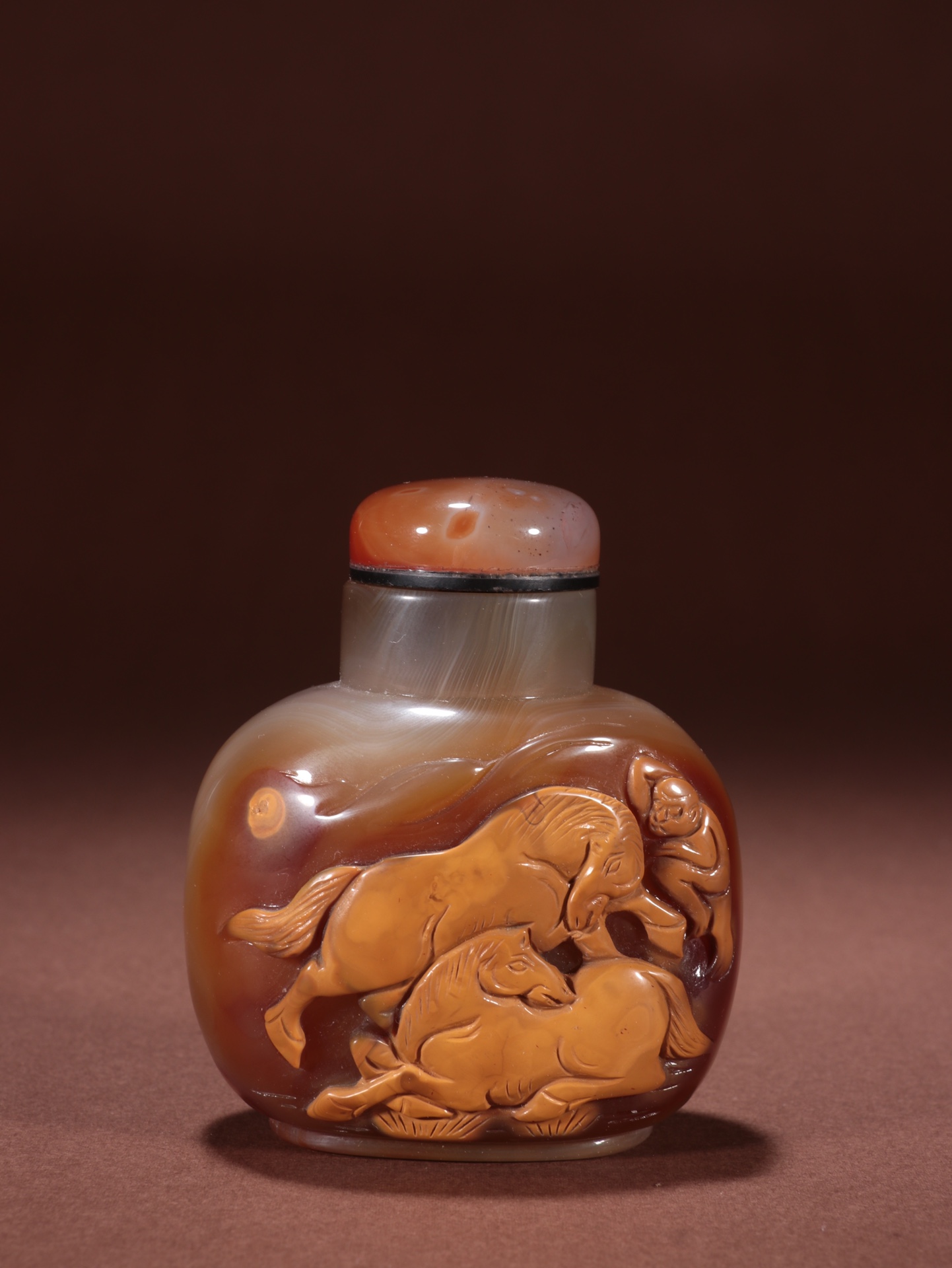 旧藏玛瑙俏色马上封侯鼻烟壶