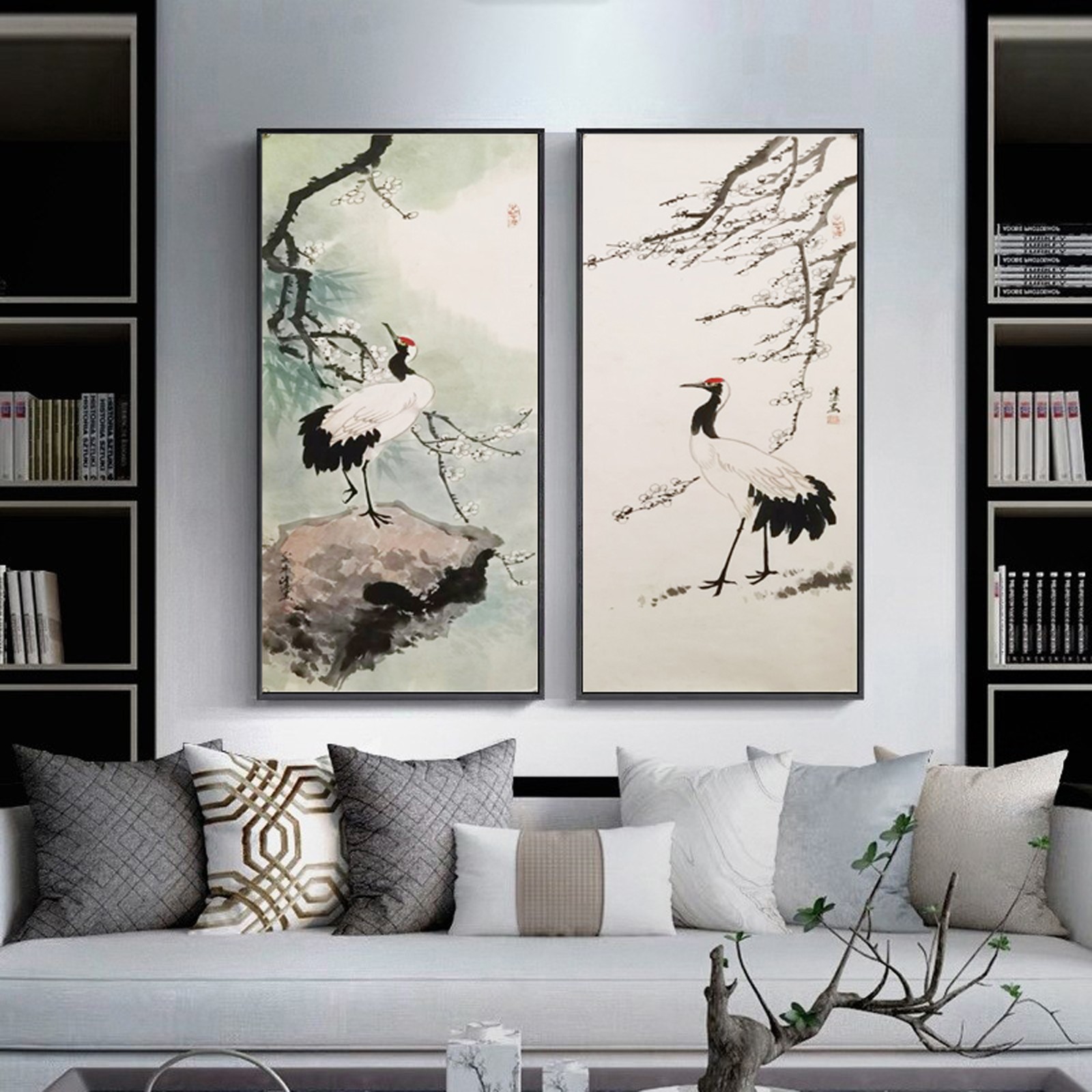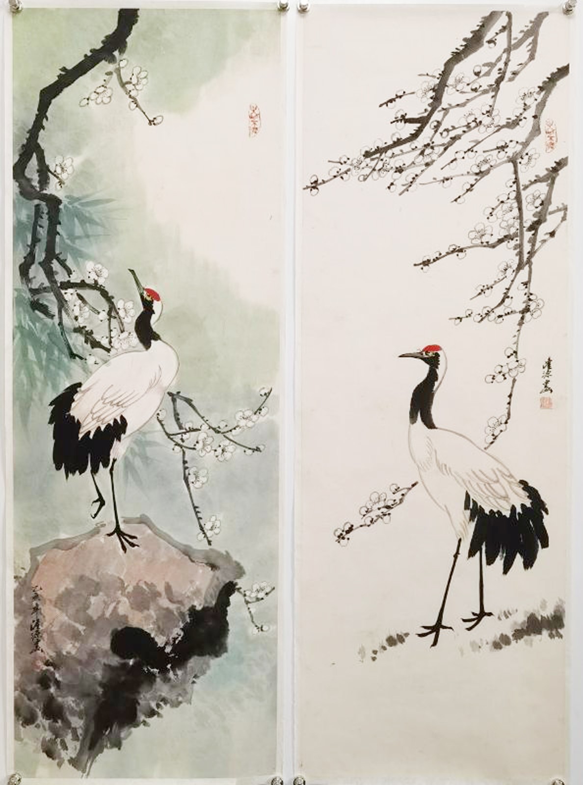 拍品名称: 陈隆源 梅鹤同春双桢