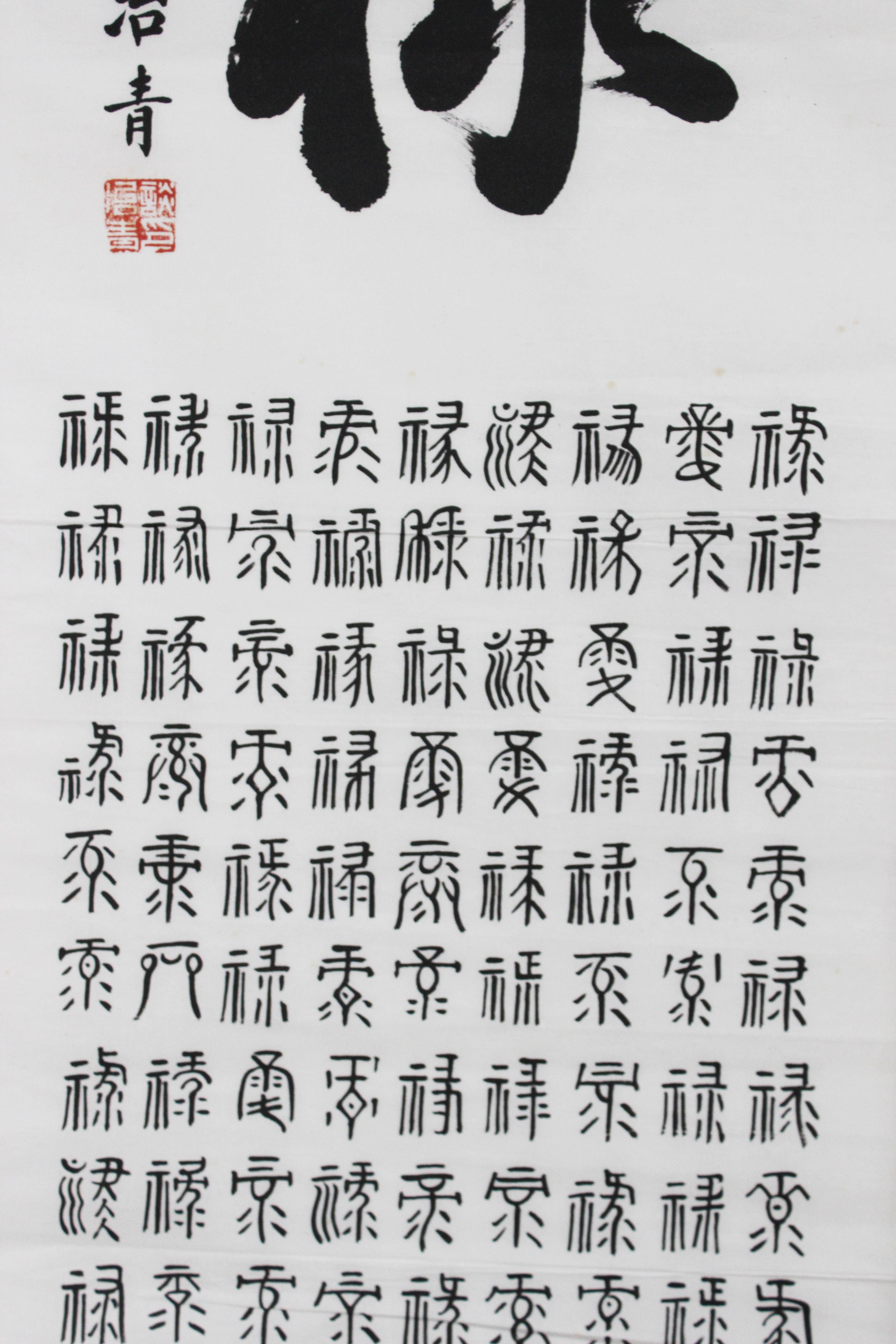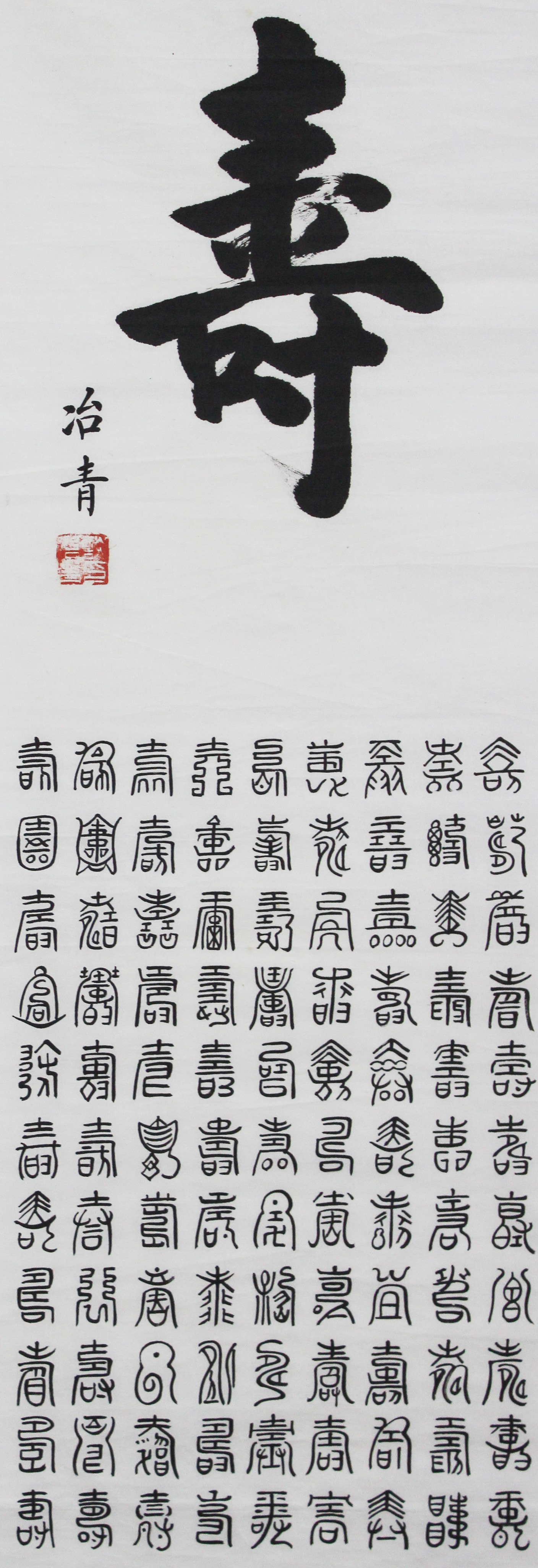 拍品名称: 谈冶青 百字“福禄寿财”四条屏